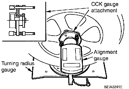 Install the CCK gauge attachment (SST: KV991 040S0 ( - ) ) as following procedure on wheel, then measure wheel alignment.