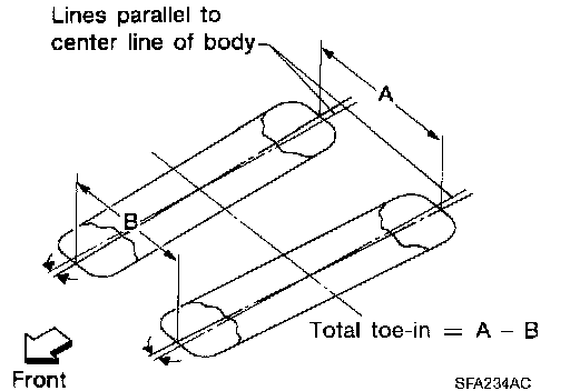 Measure toe-in using the following procedure. If out of the specification, inspect and replace any damaged or worn rear suspension Darts.