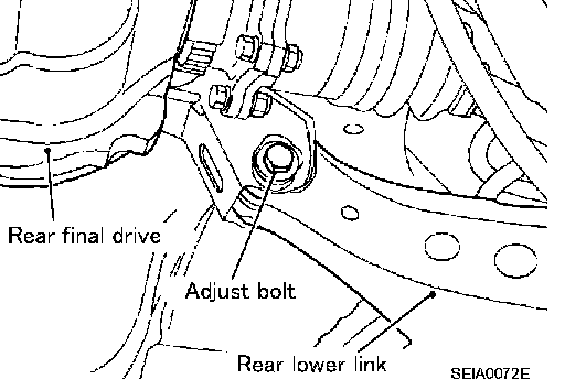 7. If outside the standard value, adjust with adjusting bolt in rear lower link.