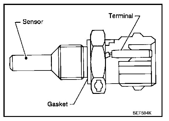 The engine coolant temperature sensor is used to detect the engine coolant temperature. The sensor modifies a voltage signal from the ECM. The modified signal returns to the ECM as the engine coolant temperature input. The sensor uses a thermistor which is sensitive to the change in temperature. The electrical resistance of the thermistor decreases as temperature increases.