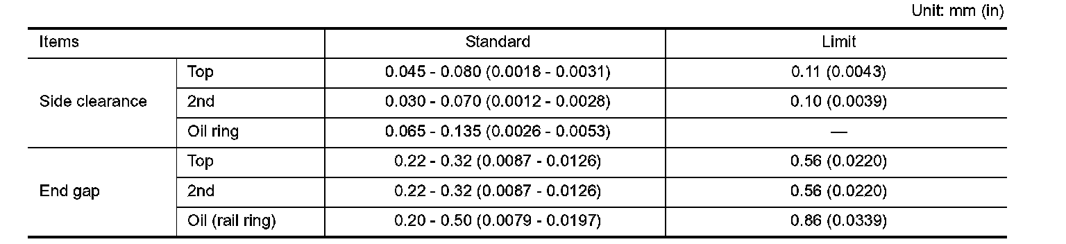 ^ If the measured value exceeds the limit, or if there are scratches and/or seizure on the cylinder inner wall, hone or bore the inner wall.