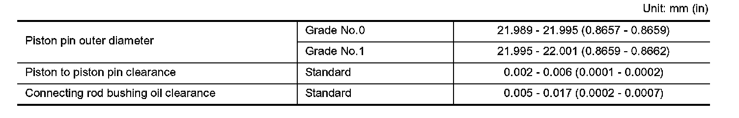 ^ Piston pin (piston pin hole) grade is provided only for the parts installed at the plant. For service parts, no grades can be selected. (Only "0" grade is available.)