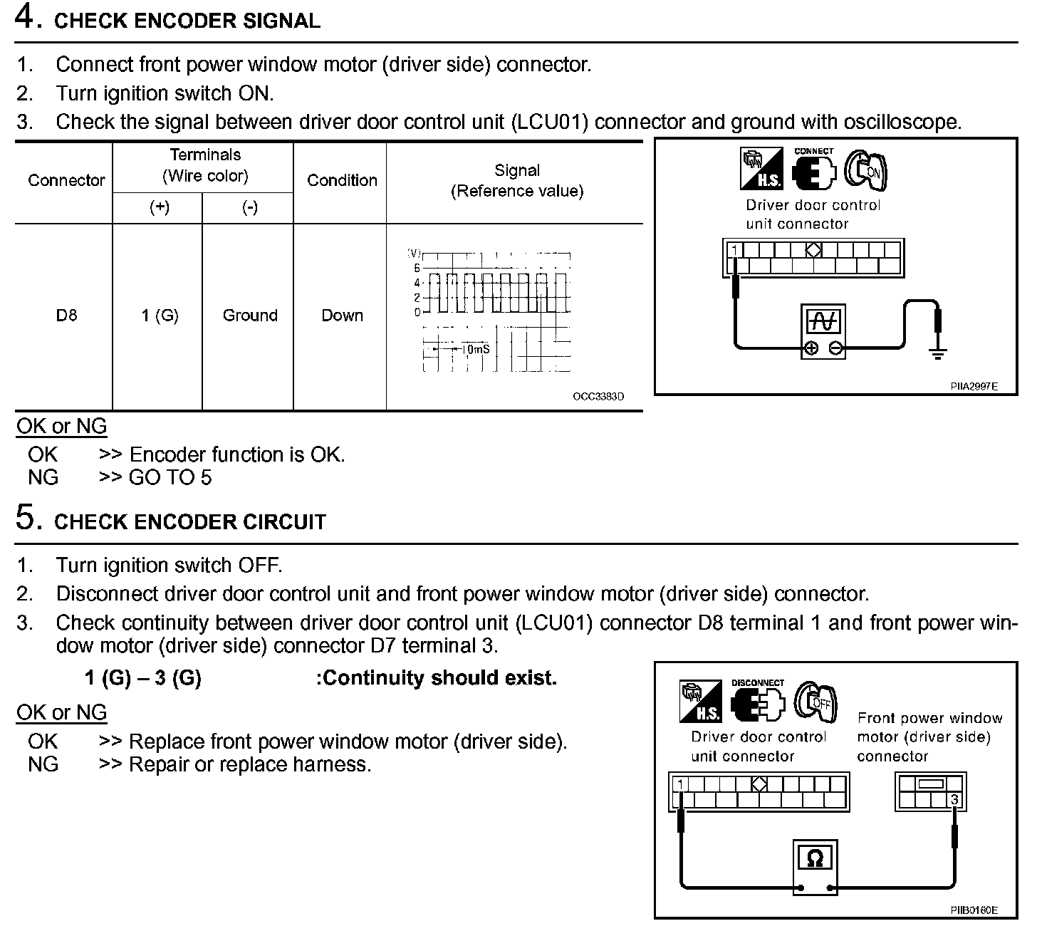 Encoder Circuit Check (driver Side) (Steps 4 - 5):