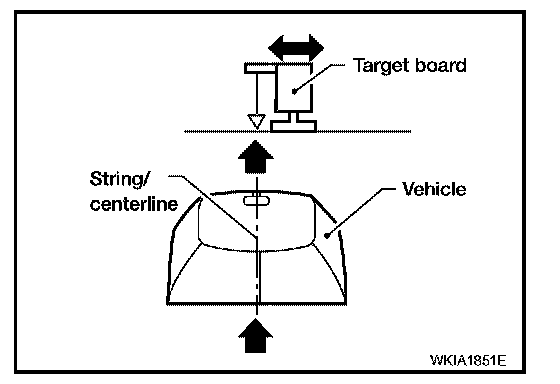 1. Suspend a string with weights on each end over the centerline of the vehicle. The string should lay over the center of the front and back bumpers. Mark these center points on the ground at each weight.