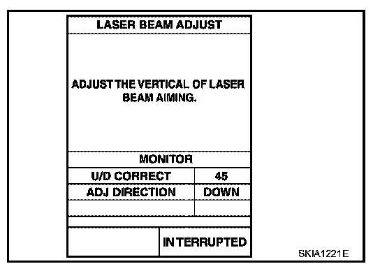 8. After the CONSULT-II displays "ADJUST THE VERTICAL OF LASER BEAM AIMING" turn the vertical adjusting screw until "U/D CORRECT" value is set in the range of ±4.