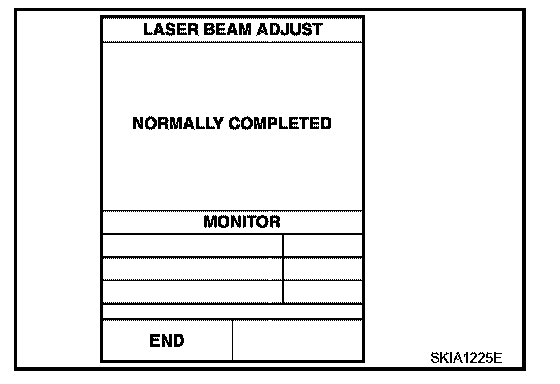 - Complete all necessary steps for laser beam adjustment until the the CONSULT-II indicates "COMPLETED". If the procedure does not complete, the ICC system is inoperable.