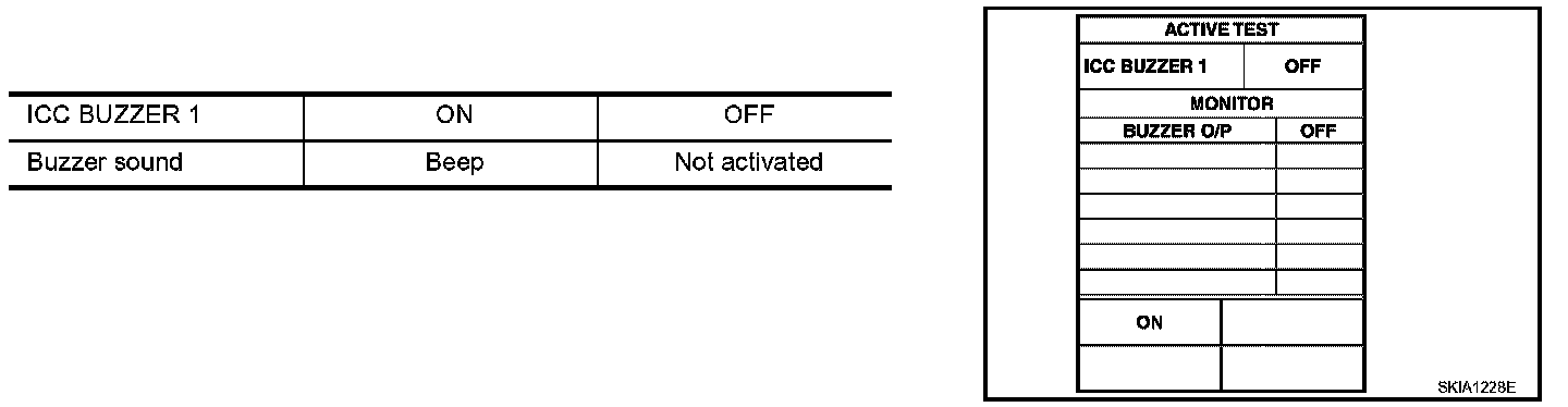 - Touch "ON" and "OFF" to check that ICC warning chime operates as shown in the chart.