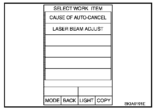 2. Touch "CAUSE OF AUTO-CANCEL" on "SELECT WORK ITEM" screen.