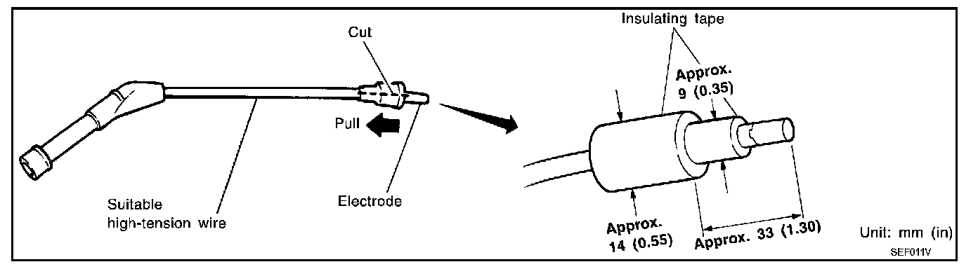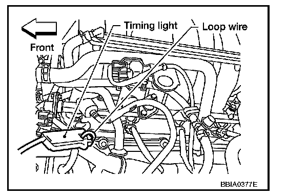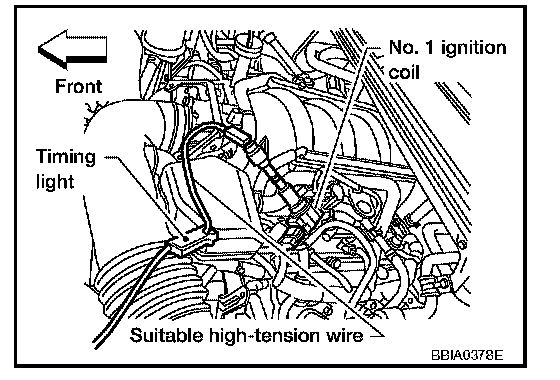 2. Connect ignition coil No.1 and spark plug with suitable high-tension wire as shown, and attach timing light clamp to this wire.