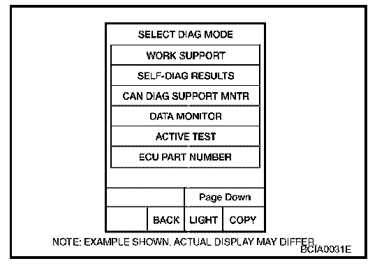 4. Touch "BCM" on "SELECT TEST ITEM" screen.
