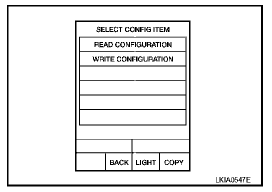 7. Touch "READ CONFIGURATION" on "SELECT CONFIG ITEM" screen.