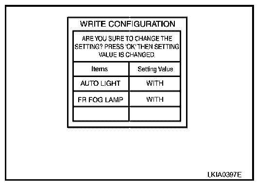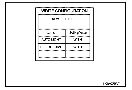 - Depending on CONSULT-II software version being used, some or all of the write configuration items shown in the following configuration lists may be displayed. If an item does not appear on the CONSULT-II "WRITE CONFIGURATION" screen(s), then it is an auto setting item and it cannot be manually set or changed.