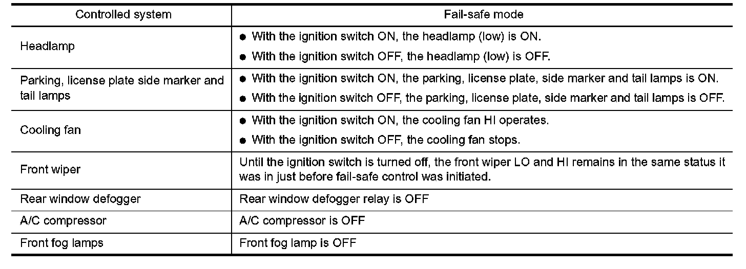 - Operation of control parts by IPDM E/R during fail-safe mode is as follows: