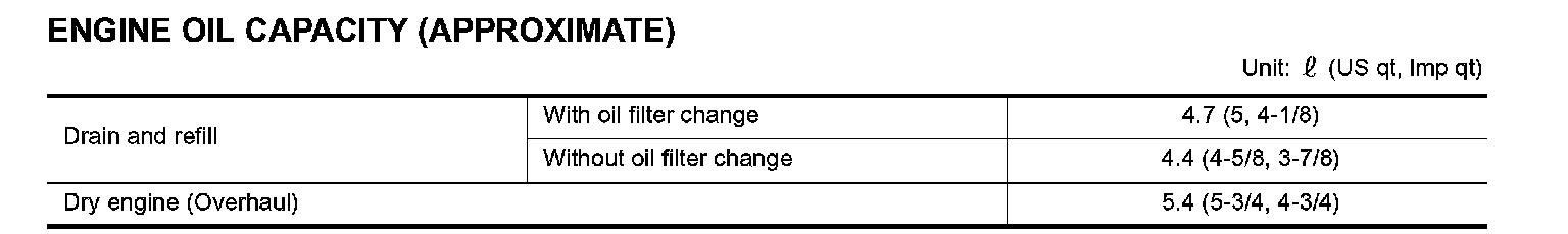 ENGINE OIL CAPACITY (APPROXIMATE)