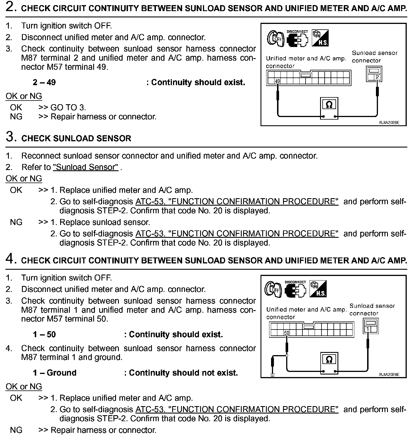 Diagnosis Procedure For Sunload Sensor (Steps 2 - 4):