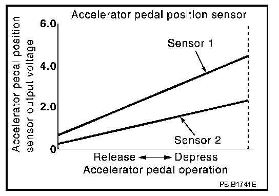 Accelerator pedal position sensor has two sensors. These sensors are a kind of potentiometers which transform the accelerator pedal position into output voltage, and emit the voltage signal to the ECM.