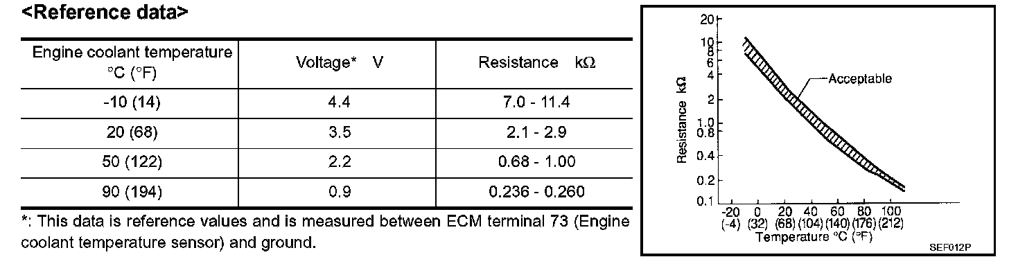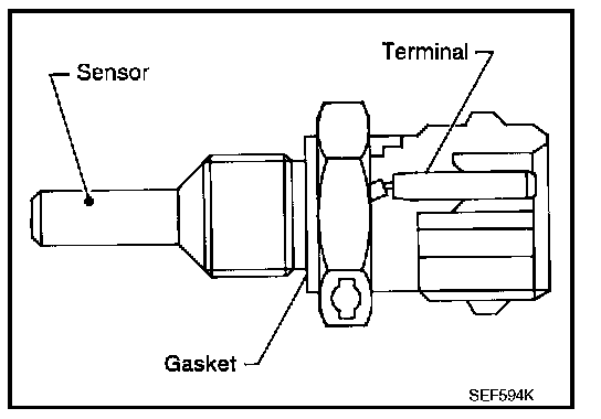 The engine coolant temperature (ECT) sensor is used to detect the engine coolant temperature. The sensor modifies a voltage signal from the ECM. The modified signal returns to the ECM as the engine coolant temperature input. The sensor uses a thermistor which is sensitive to the change in temperature. The electrical resistance of the thermistor decreases as temperature increases.