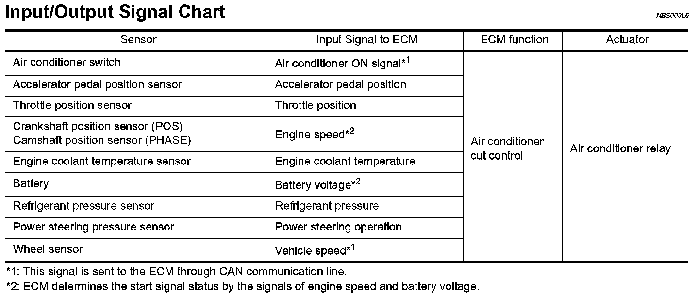 AIR CONDITIONING CUT CONTROLInput/Output Signal Chart