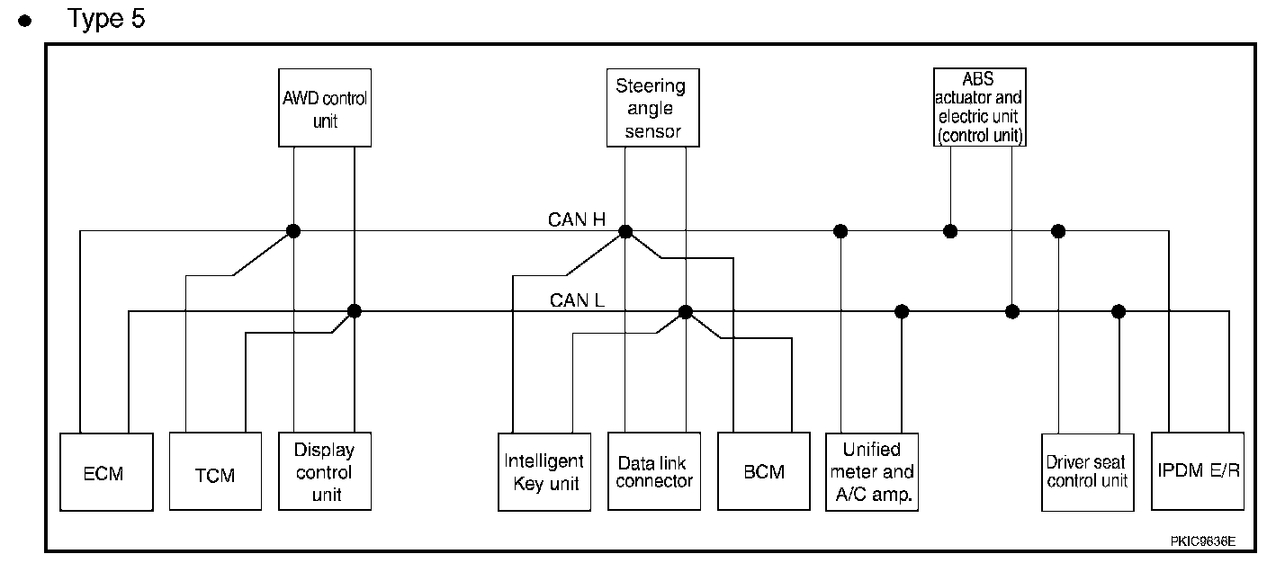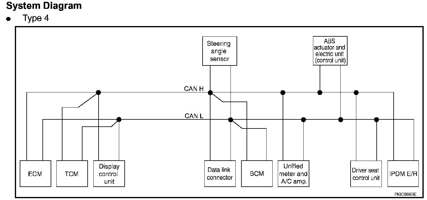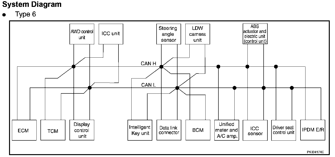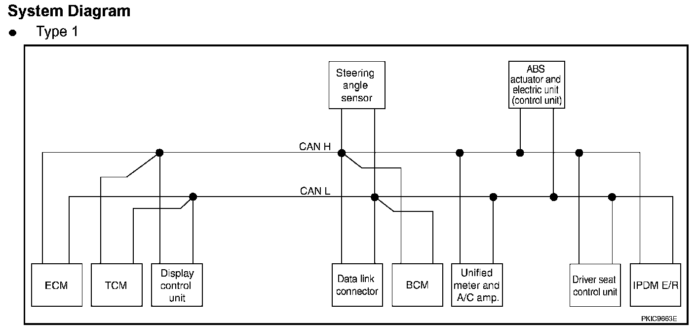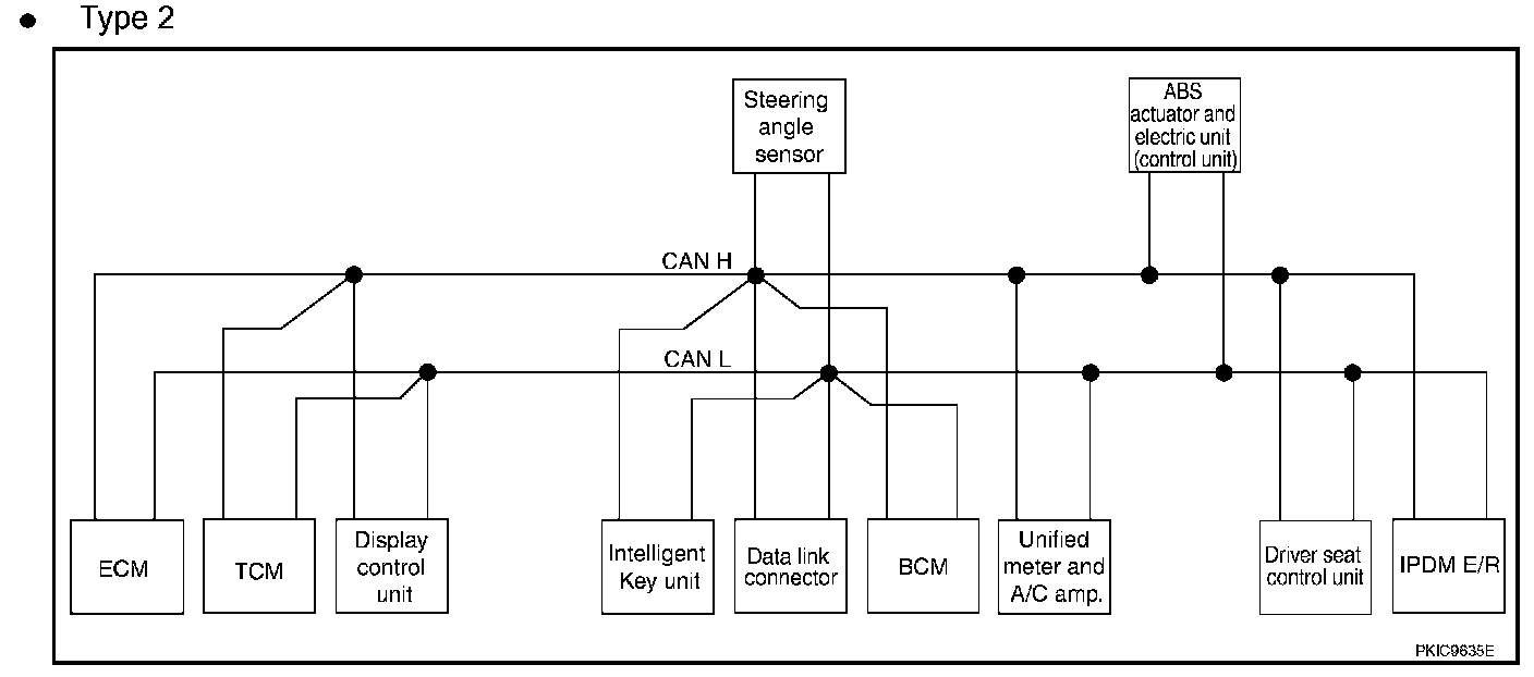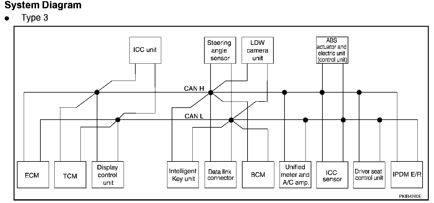 CAN (Controller Area Network) is a serial communication line for real time application. It is an on-vehicle multiplex communication line with high data communication speed and excellent error detection ability. Many electronic control units are equipped onto a vehicle, and each control unit shares information and links with other control units during operation (not independent). In CAN communication, control units are connected with 2 communication lines (CAN H line, CAN L line) allowing a high rate of information transmission with less wiring.