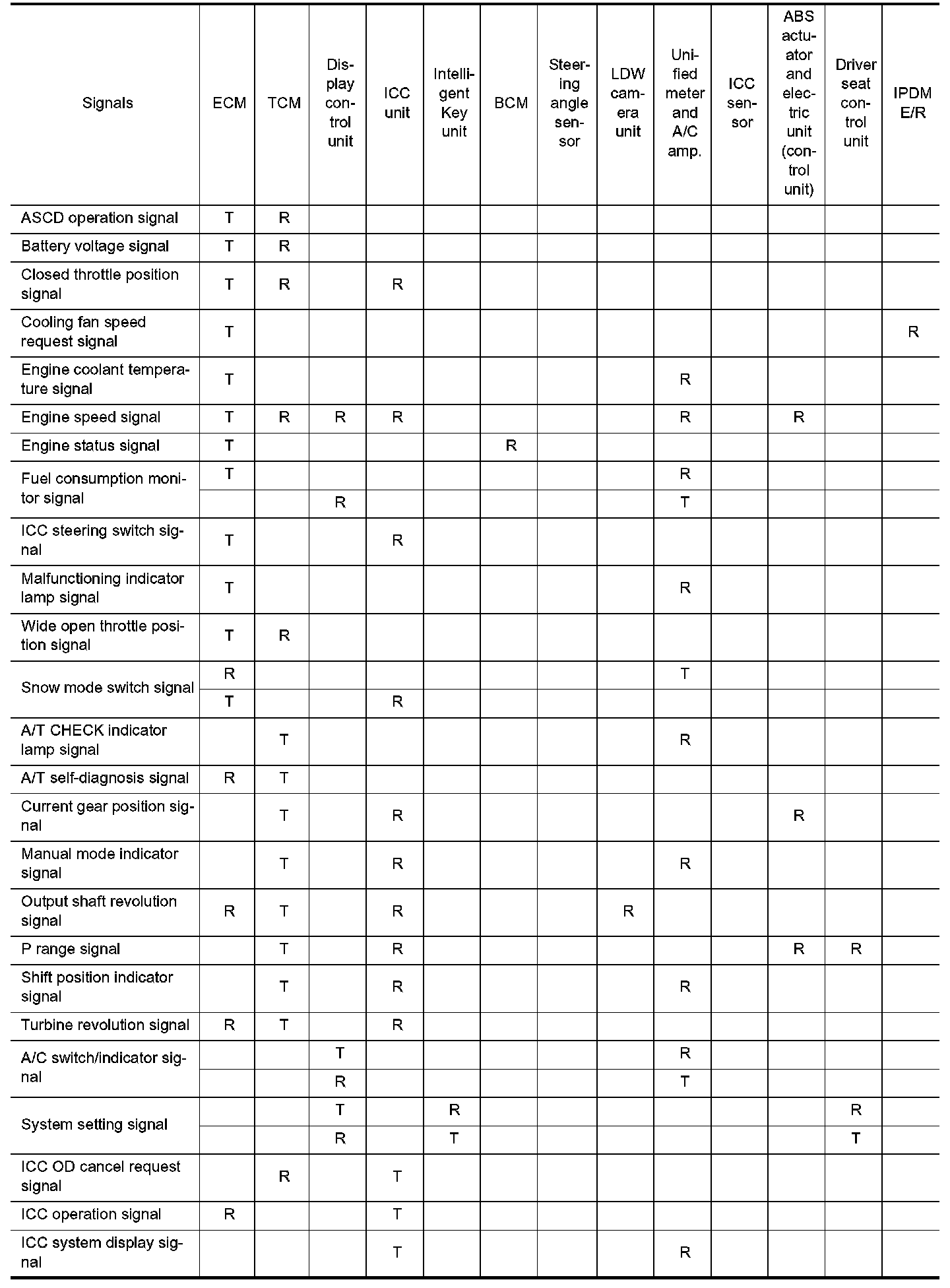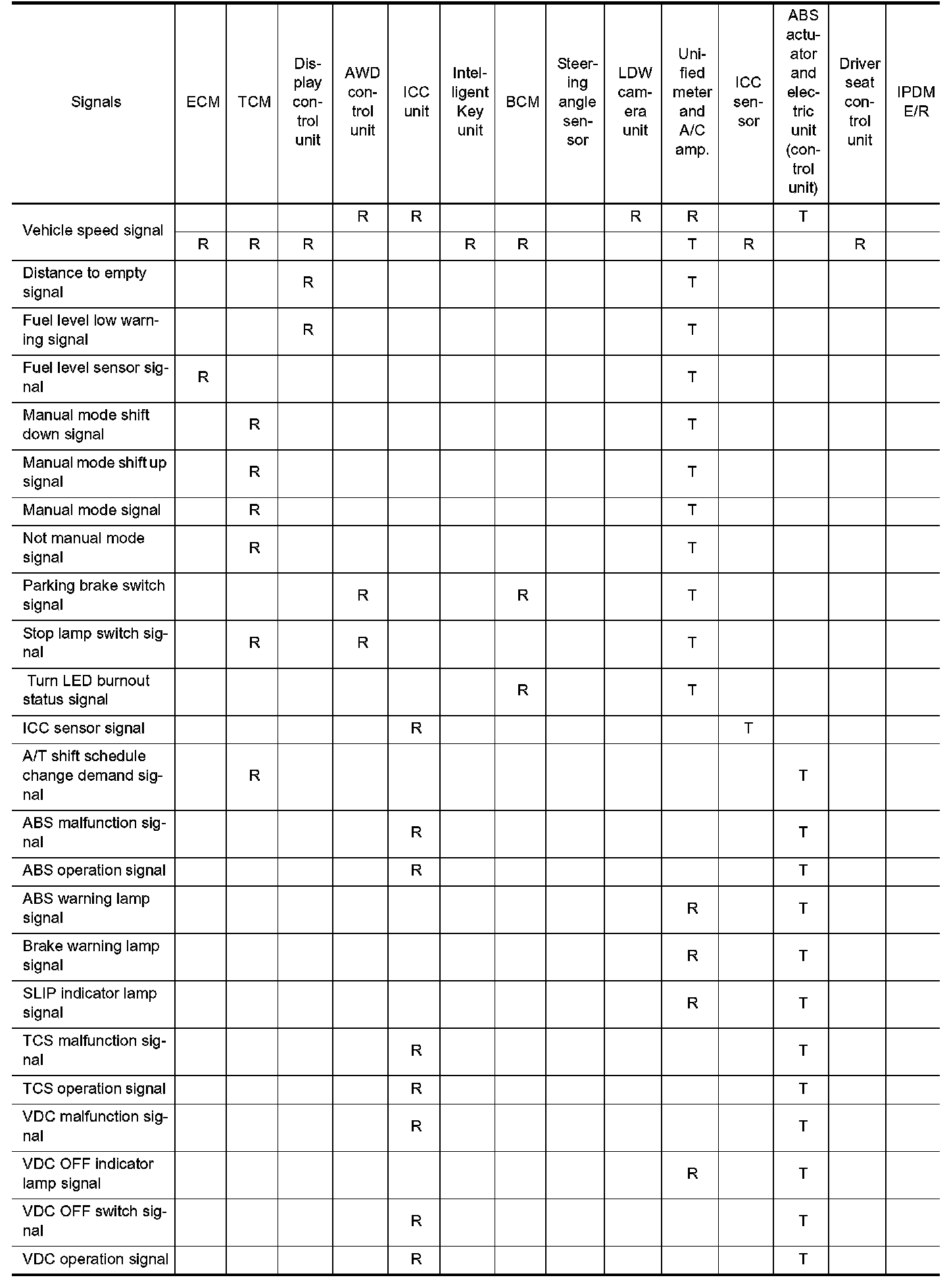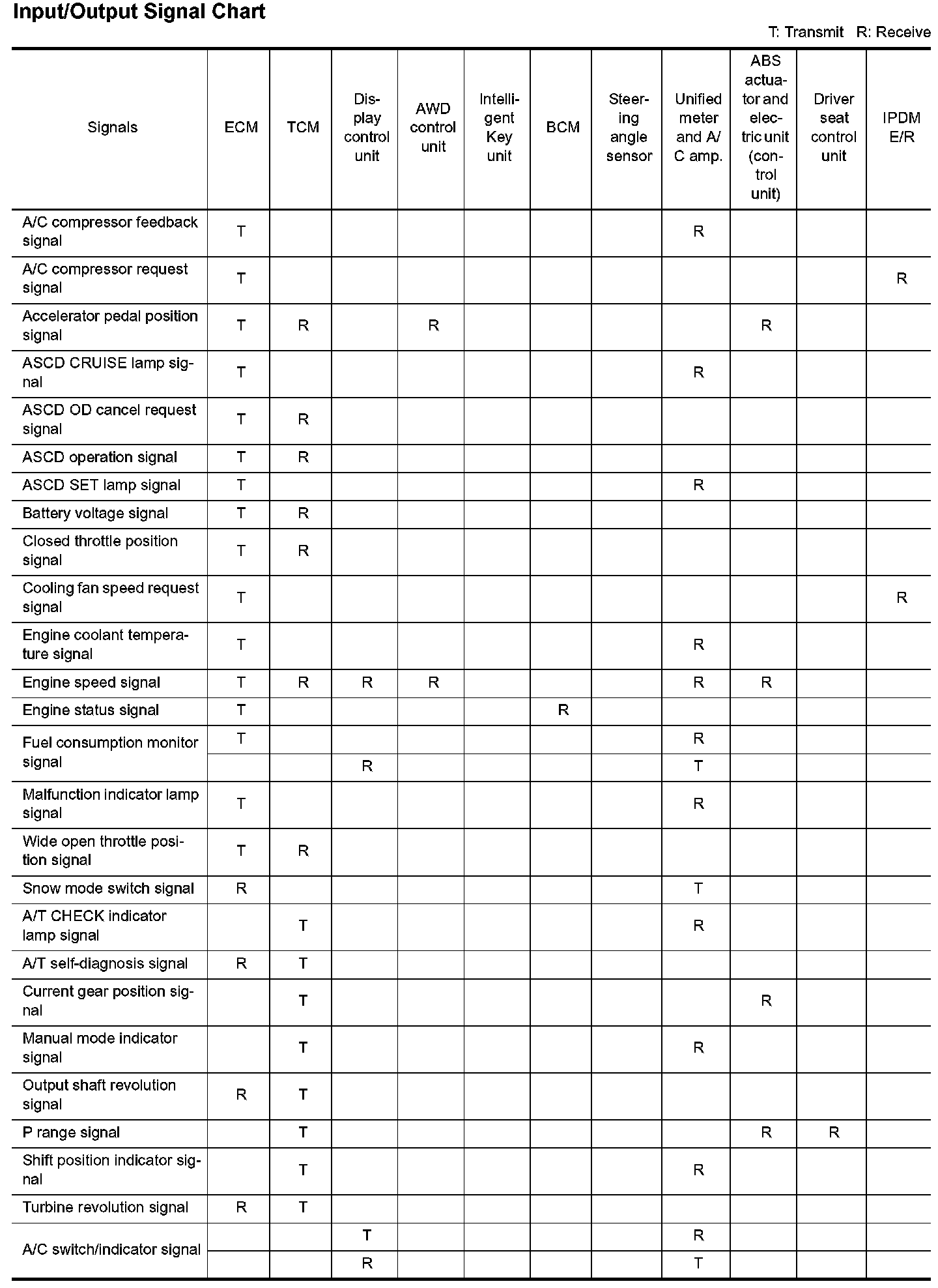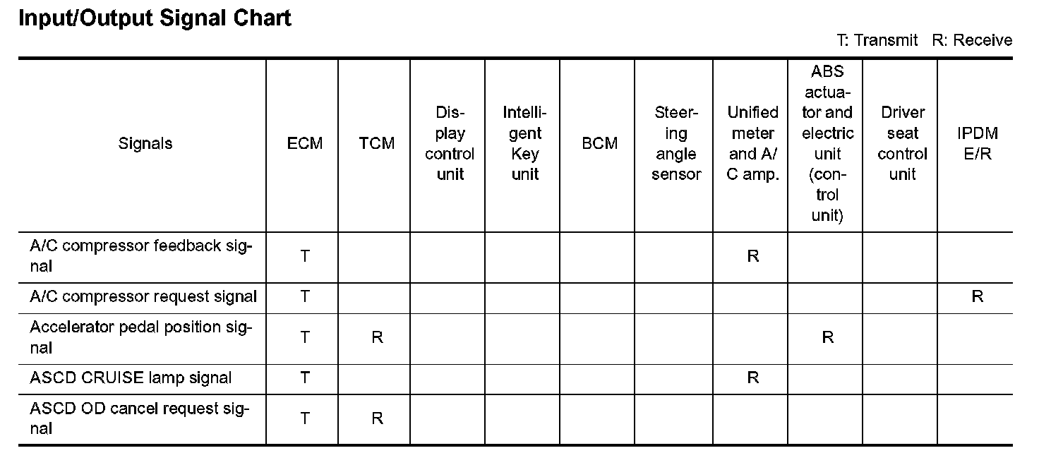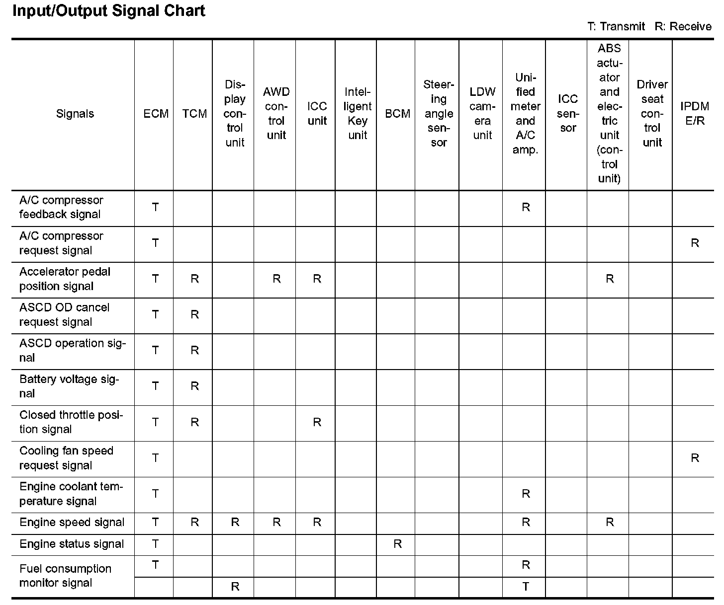 Input/Output Signal Chart Part 1: