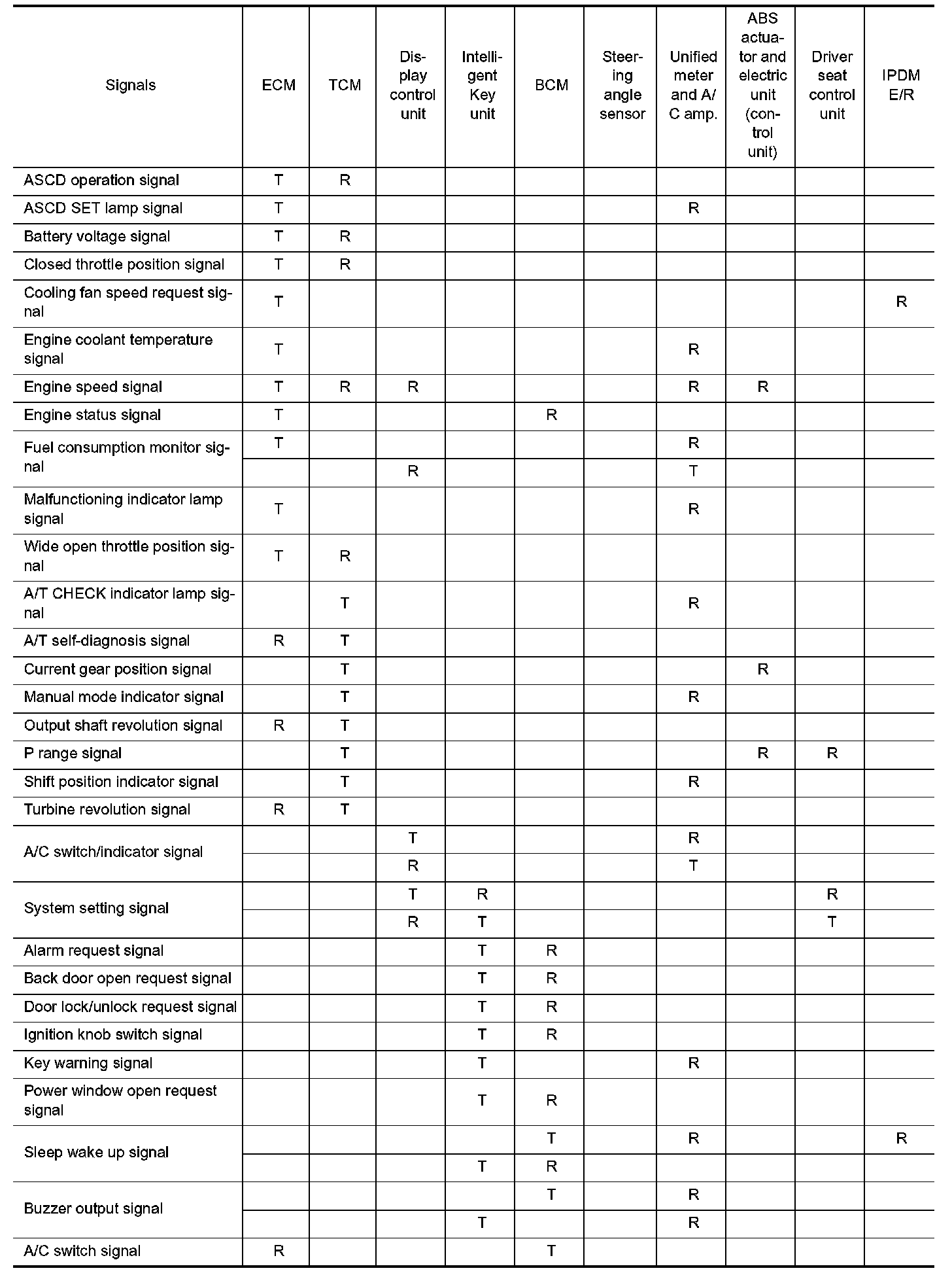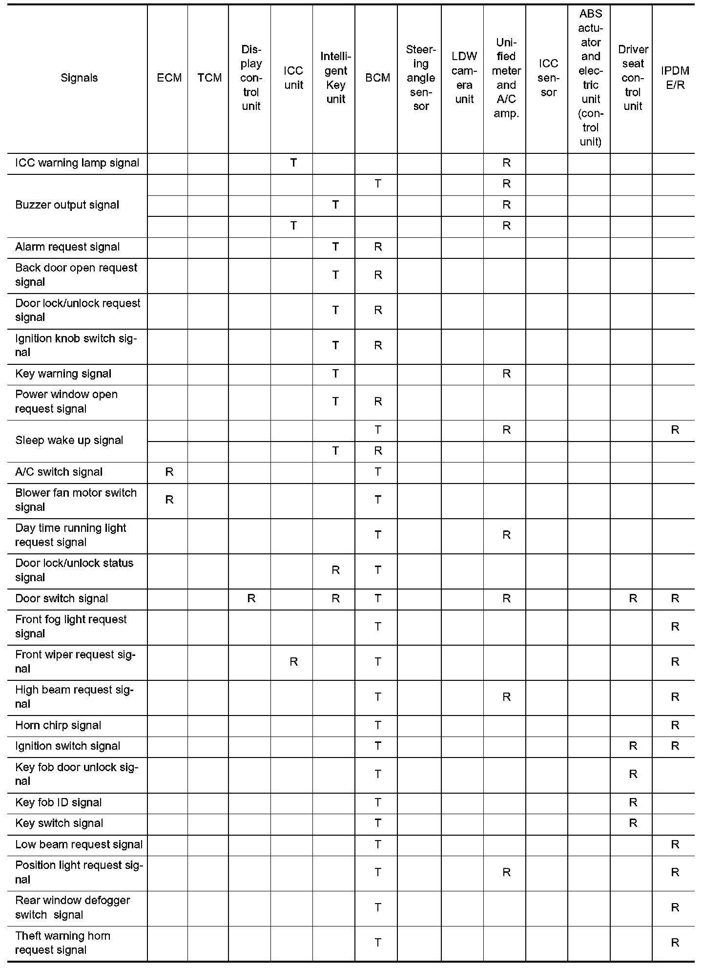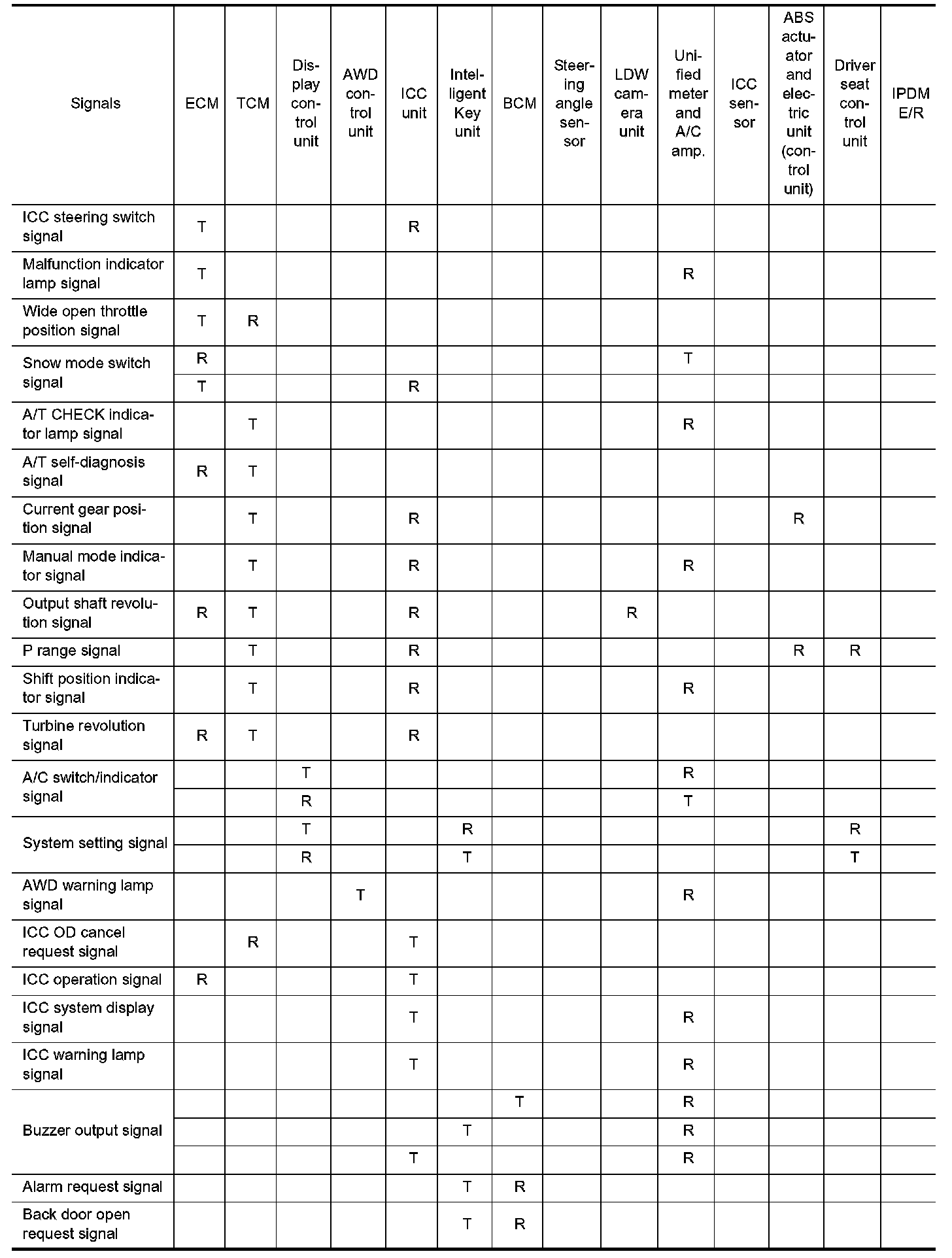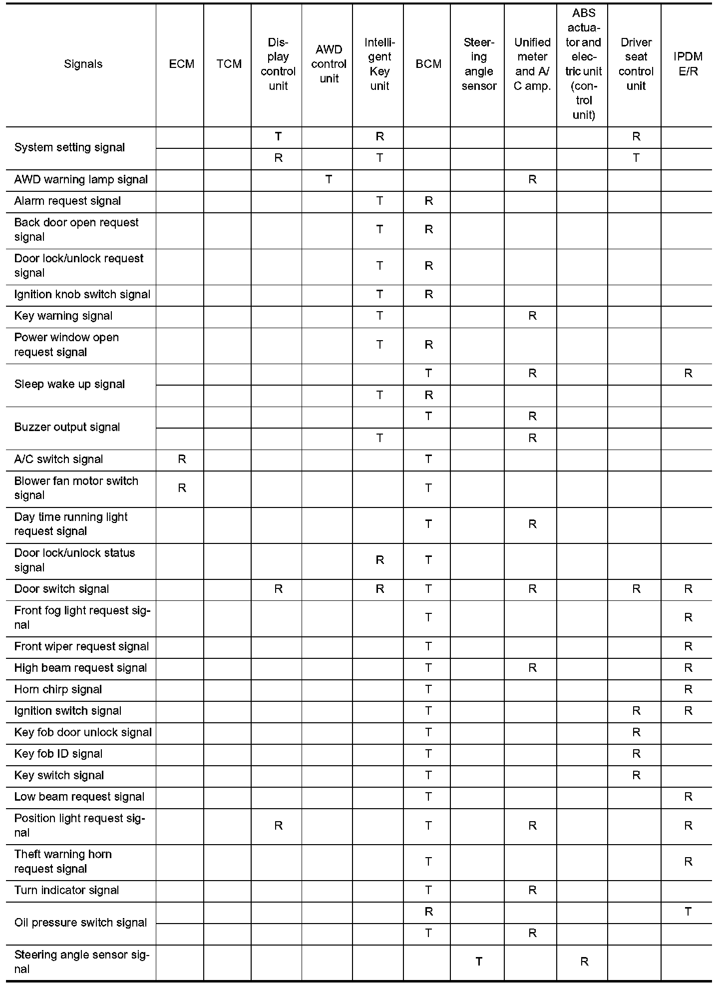 Input/Output Signal Chart Part 1: