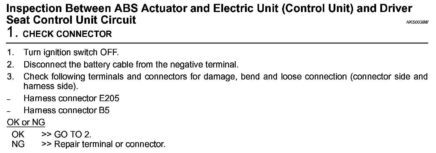 Inspection Between ABS Actuator And Electric Unit (Control Unit) And Driver Seat Control Unit Circuit (Step 1):