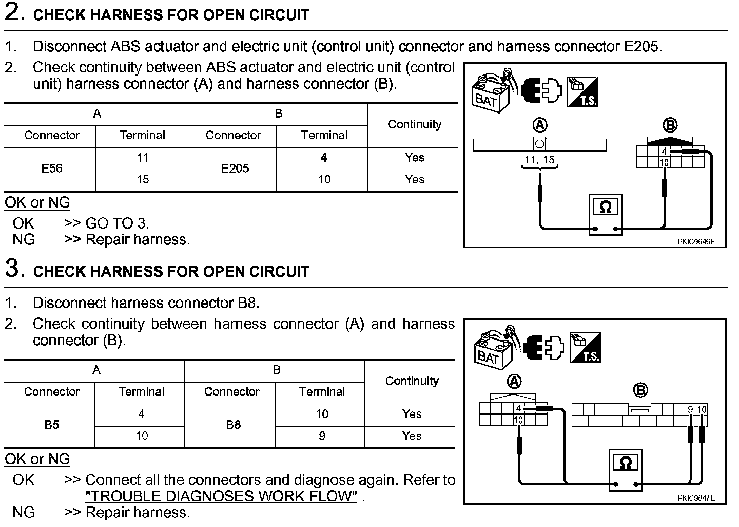 Inspection Between ABS Actuator And Electric Unit (Control Unit) And Driver Seat Control Unit Circuit (Steps 2 - 3):