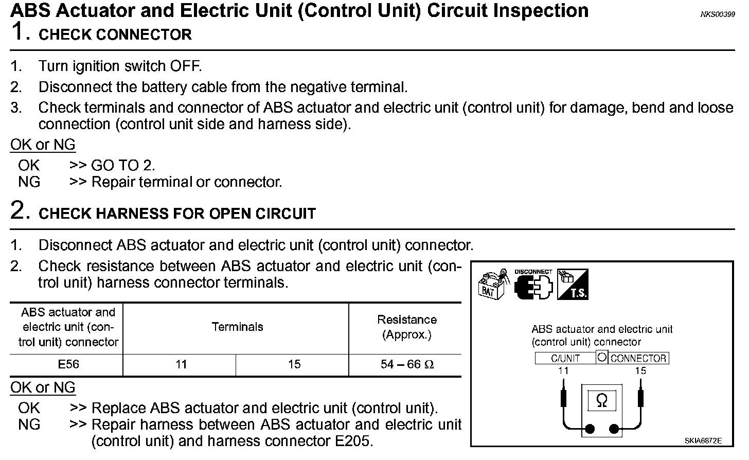 ABS Actuator and Electric Unit (Control Unit) Circuit Inspection