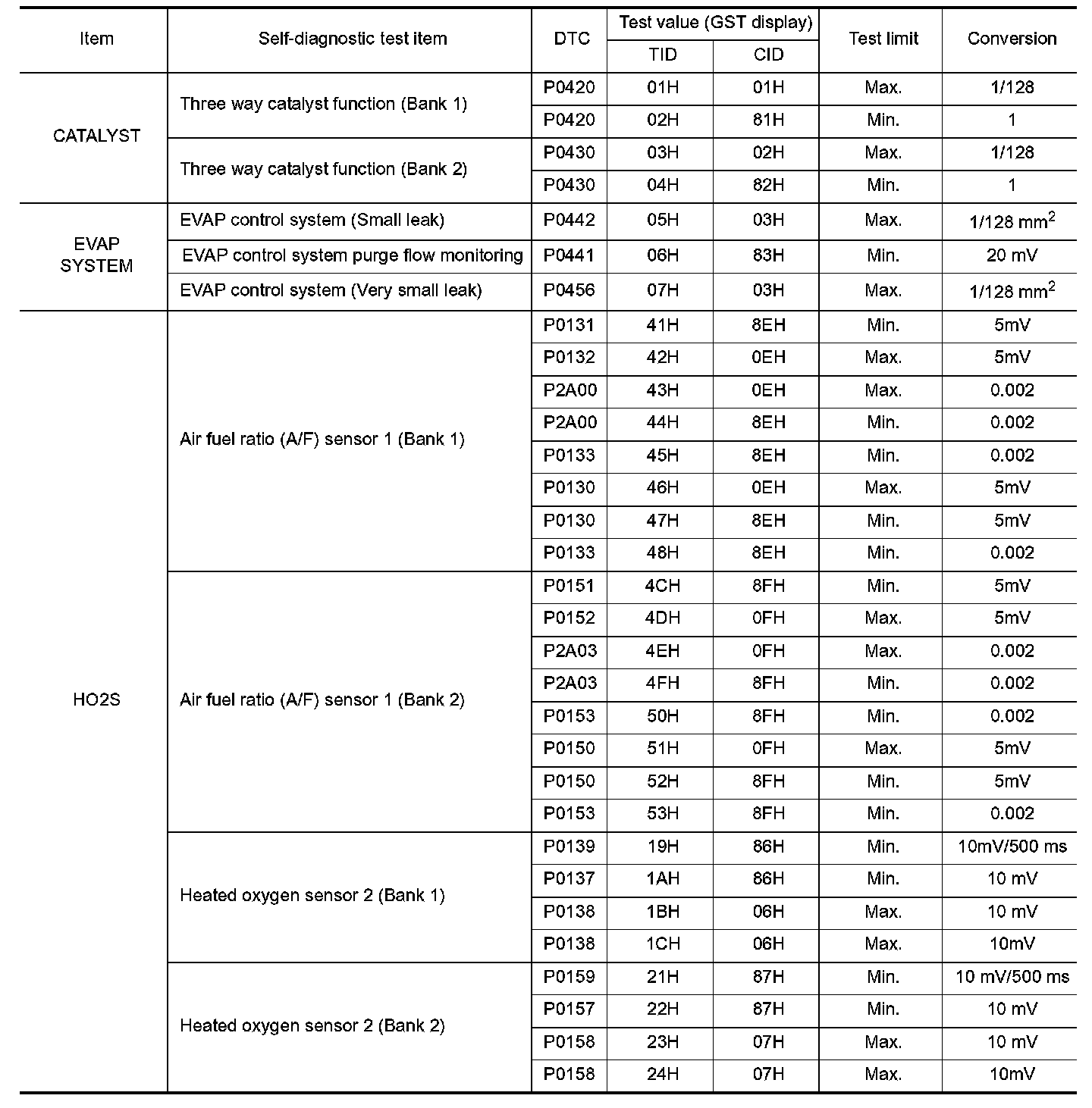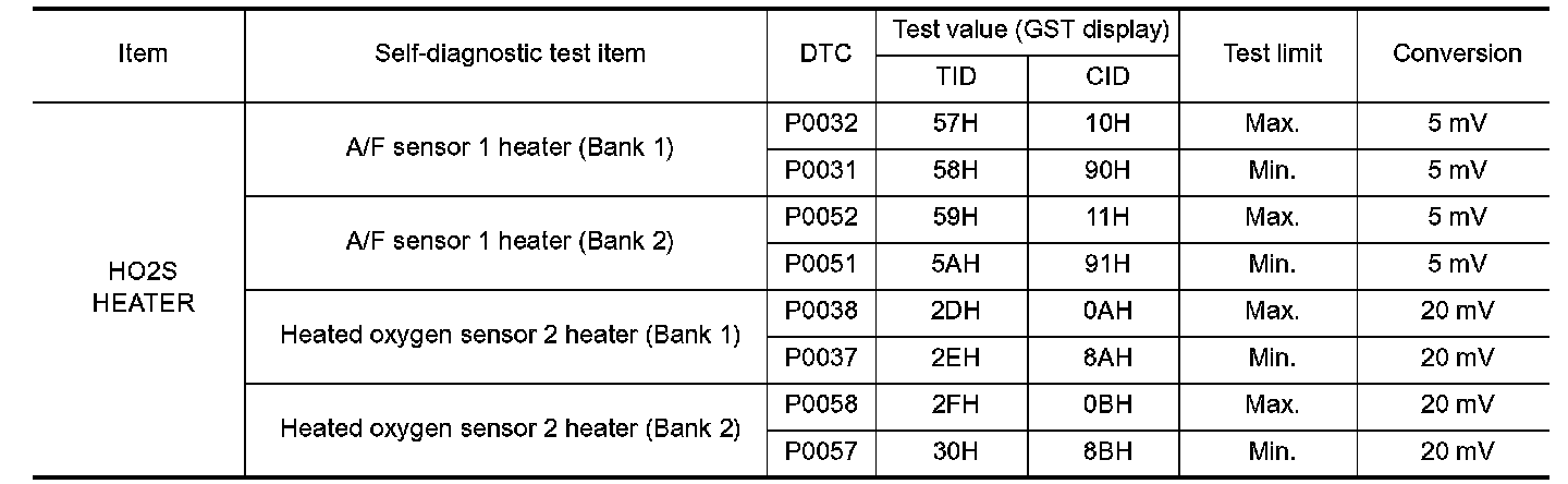 The test value is a parameter used to determine whether a system/circuit diagnostic test is OK or NG while being monitored by the ECM during self-diagnosis. The test limit is a reference value which is specified as the maximum or minimum value and is compared with the test value being monitored.