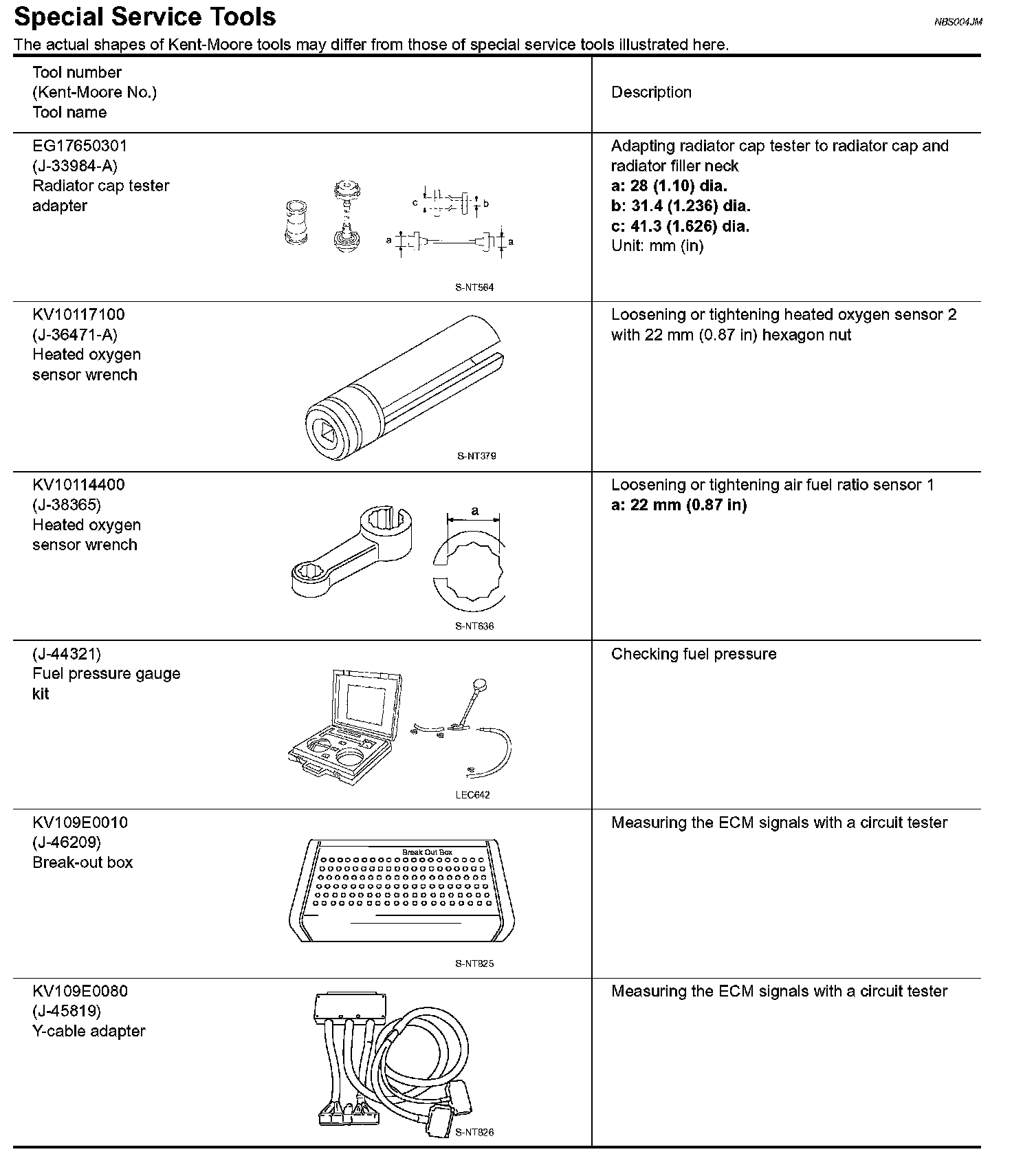 Special Service Tools: