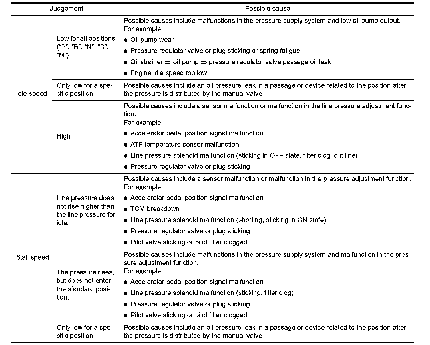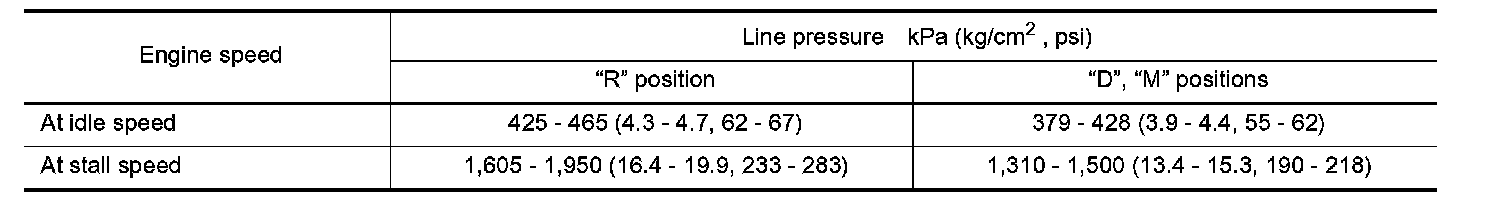 ^ When measuring the line pressure at the stall speed, refer to AT-53, "STALL TEST". Stall Test