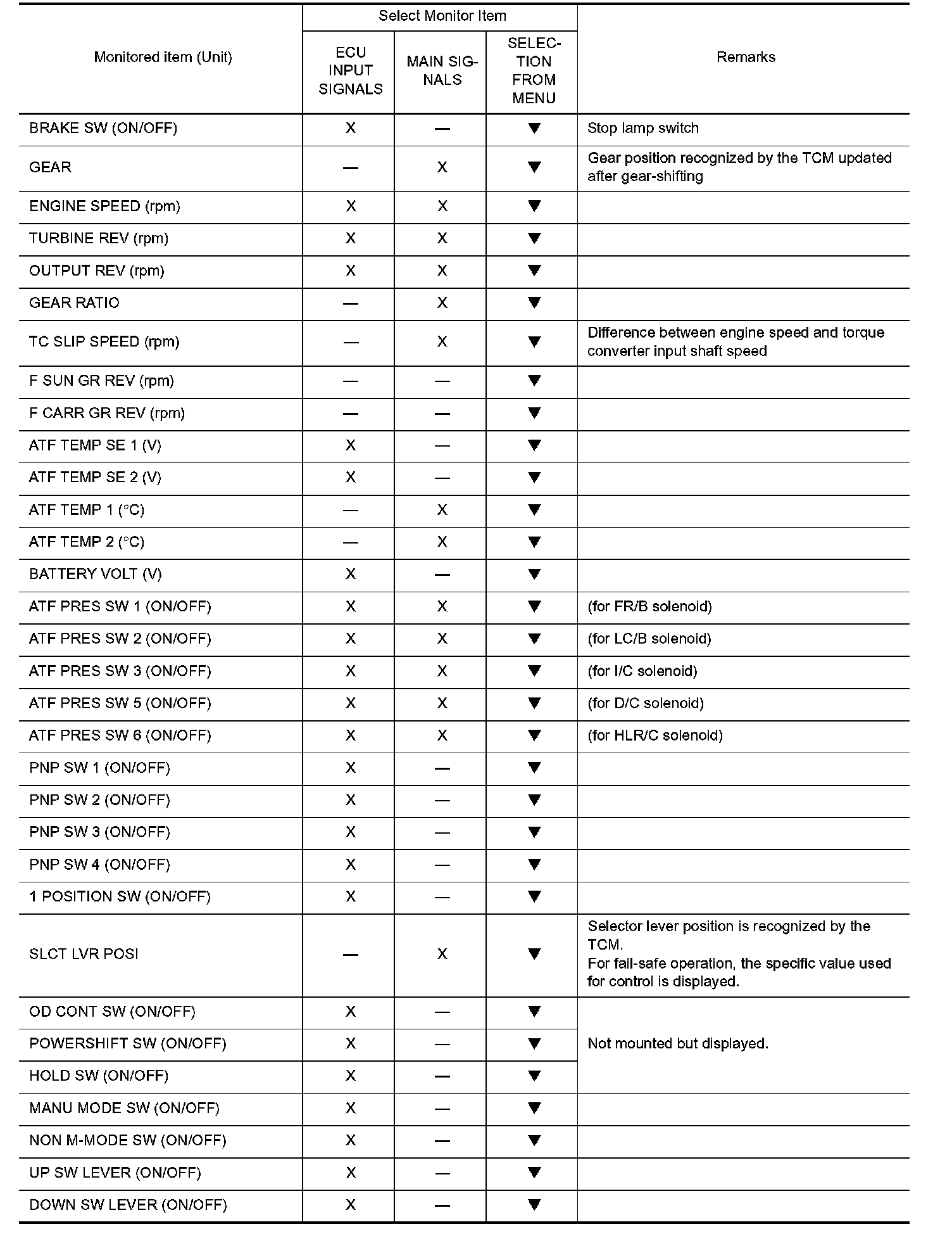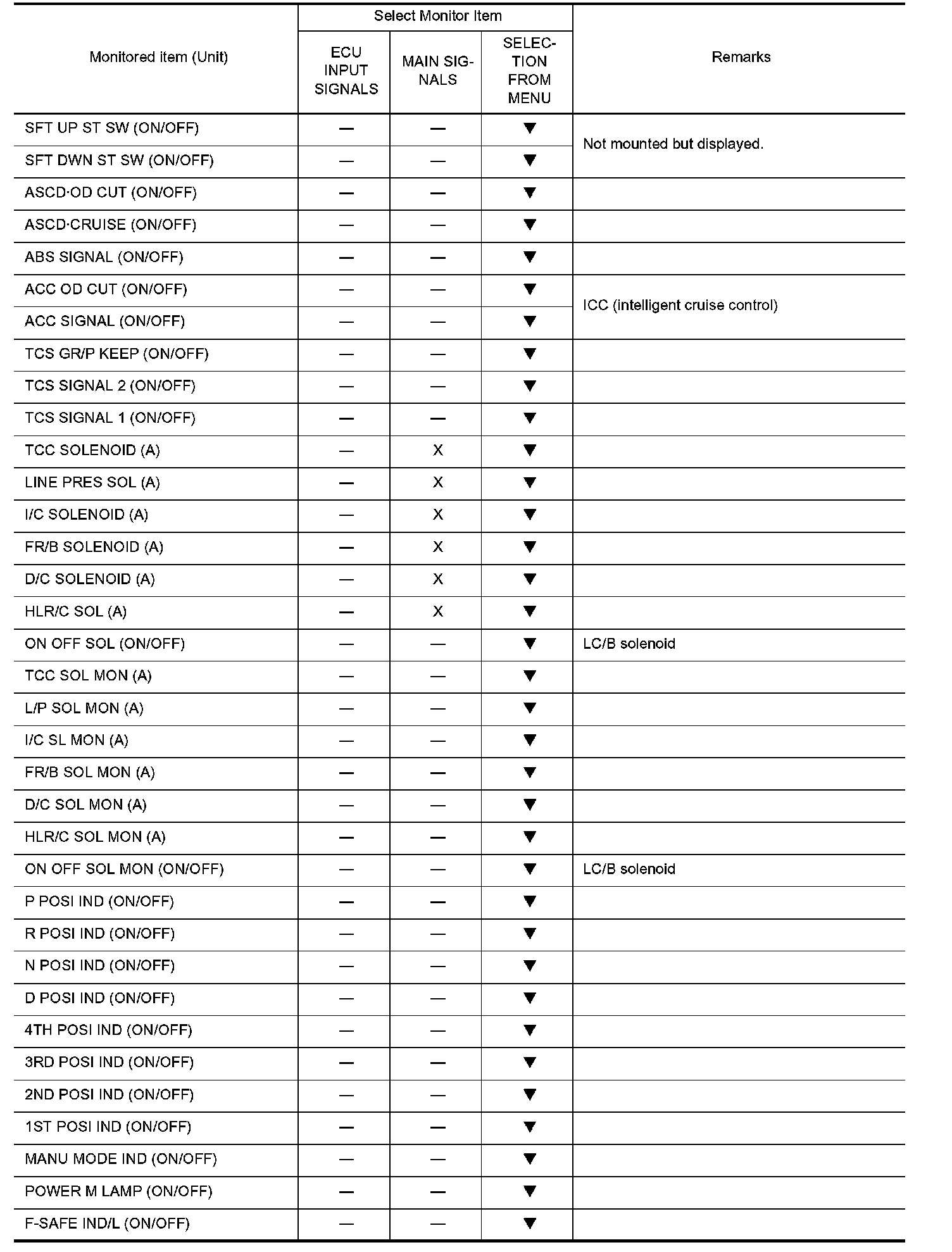 NOTE: When malfunctions detected, CONSULT-II performs REAL-TIME DIAGNOSIS. Also, any malfunction detected while in this mode will be displayed at real time.