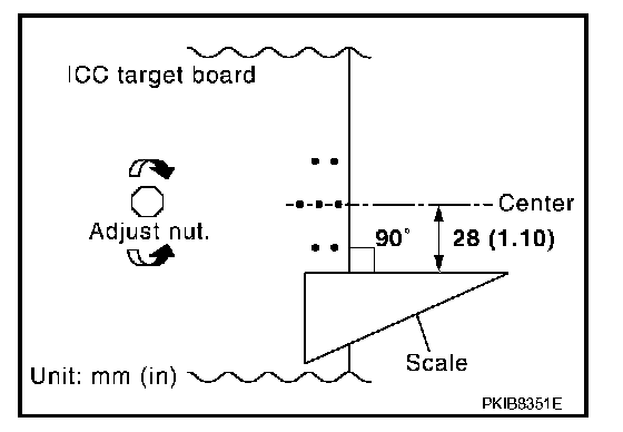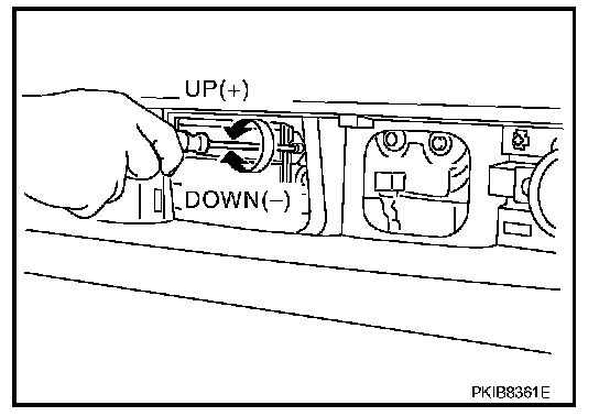 2. Adjust the sensor following the procedure on CONSULT-II. (Turn manually the screw for up-down position adjustment. ICC sensor integrated unit automatically adjust the right-left position.)