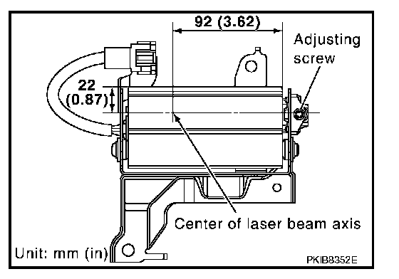 - Follow the CONSULT-II when adjusting the laser beam aiming (laser beam aiming adjustment cannot be operated without CONSULT-II).