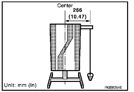 2. Suspend a thread with weight on the tip of the thread to 266 mm (10.47 in) right side of the target board from the center of the target board on top.