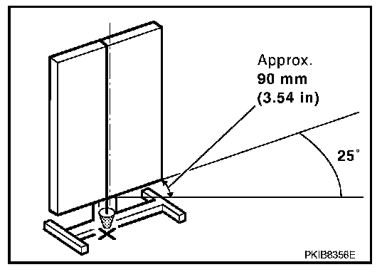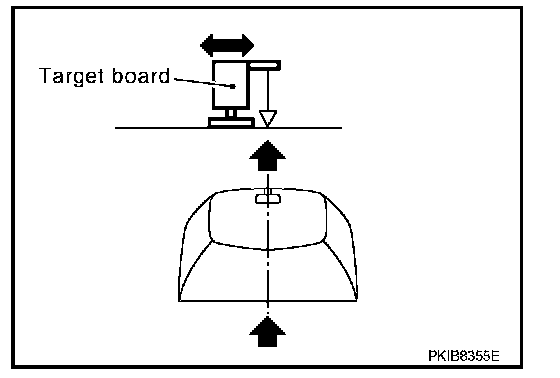 Then, adjust the position of the target board so that the weight come on the top of the marked point [3.9 m (12.8 ft) ahead of the front bumper] and face to the vehicle.