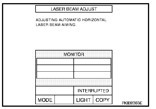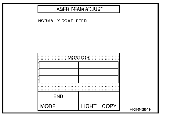 CAUTION: Complete all the procedures once "LASER BEAM ADJUST" mode is entered in CONSULT-II. When the procedure is discontinued, the ICC system is inoperable.