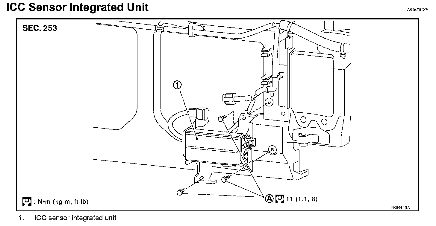 CAUTION: Adjust the laser beam aiming every time the ICC sensor integrated unit is removed or installed. Refer to "LASER BEAM AIMING ADJUSTMENT".