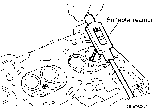3. Using the valve guide reamer (commercial service tool), ream cylinder head valve guide hole. Valve guide hole diameter (for service parts):