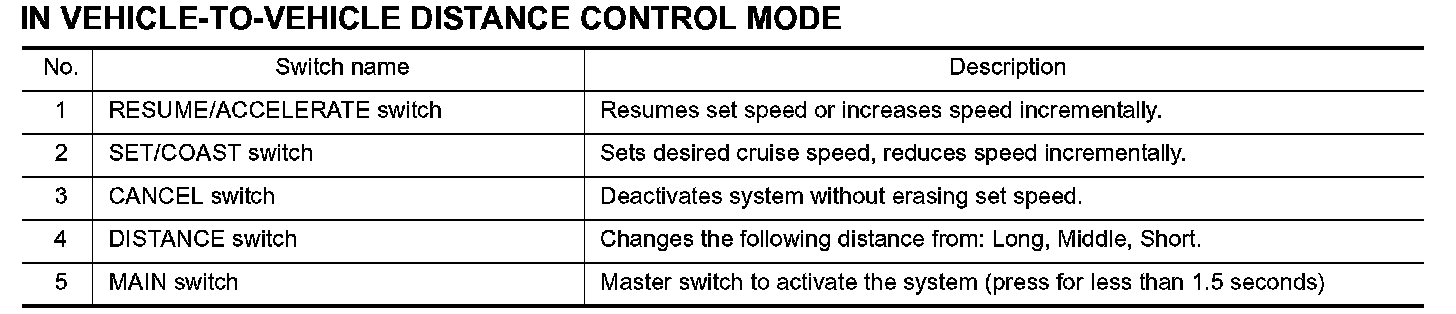 IN VEHICLE-TO-VEHICLE DISTANCE CONTROL MODE