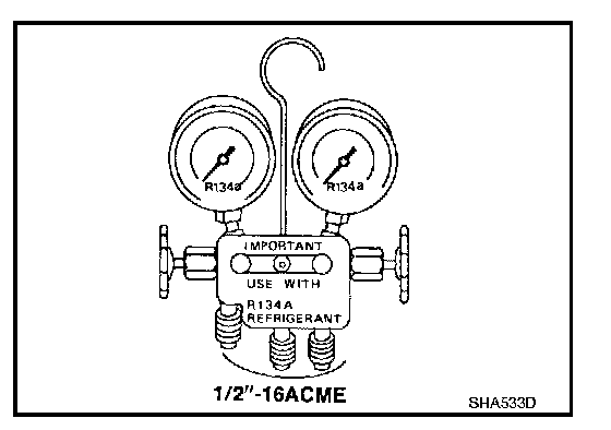 Be certain that the gauge face indicates HFC-134a or R-134a. Be sure the gauge set has 1/2"-16 ACME threaded connections for service hoses. Confirm the set has been used only with refrigerant HFC-134a (R-134a) and specified lubricants.