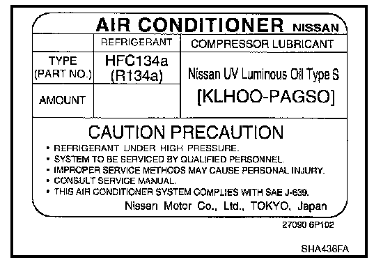- Use only specified lubricant for the HFC-134a (R-134a) A/C system and HFC-134a (R-134a) components. If lubricant other than that specified is used, compressor malfunction is likely to occur.