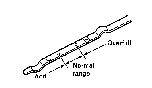 2. Insert oil level gauge and make sure the engine oil level is within the range shown in the figure.