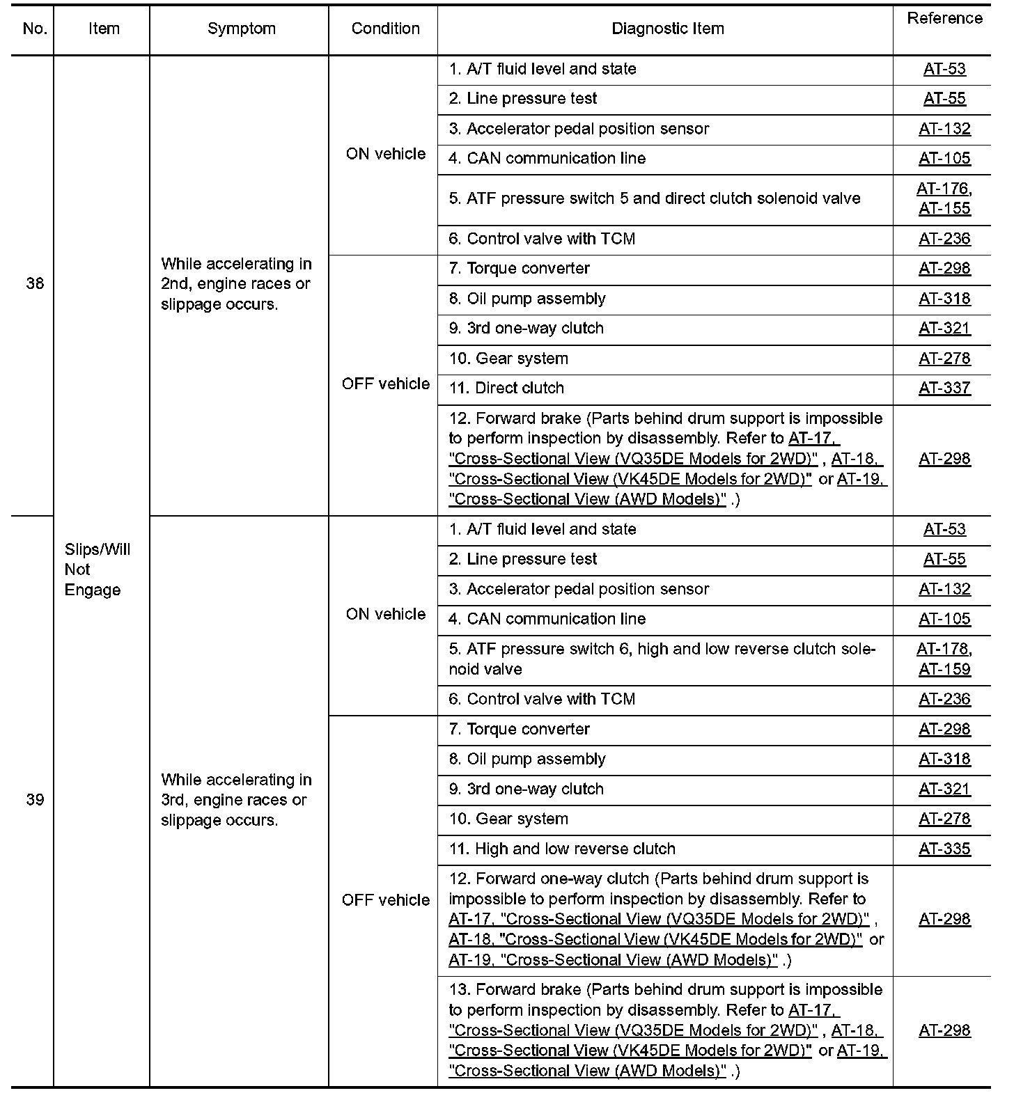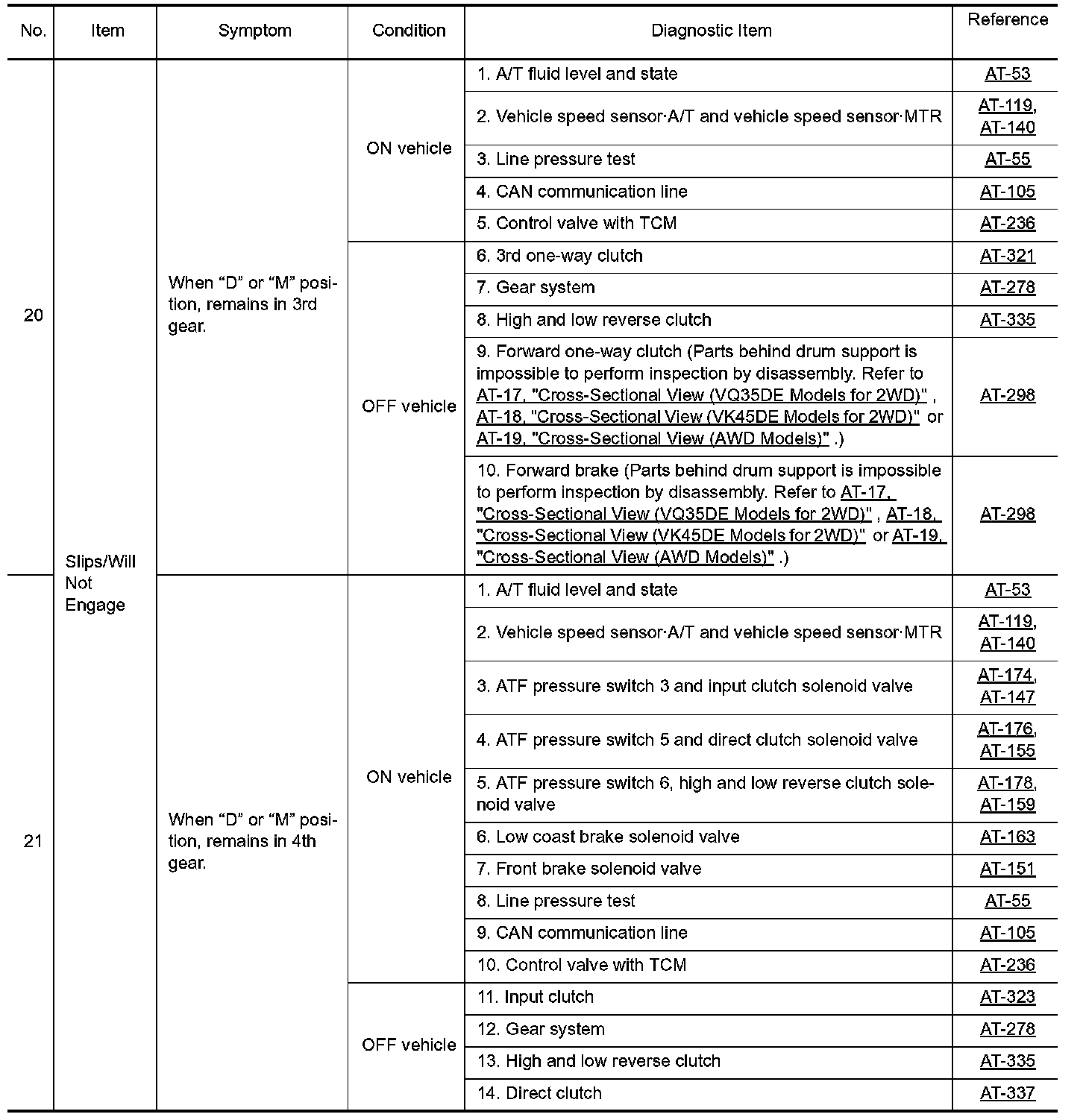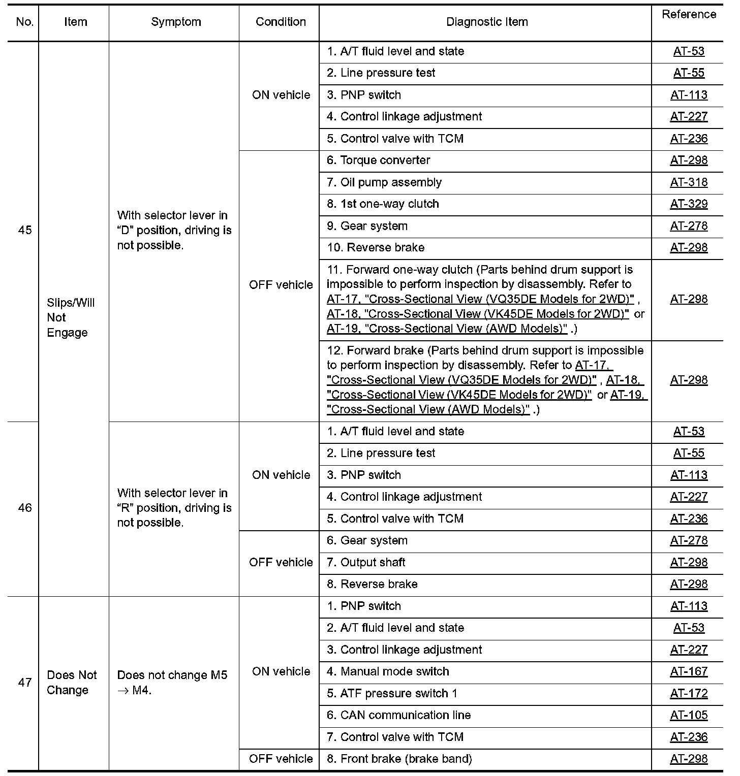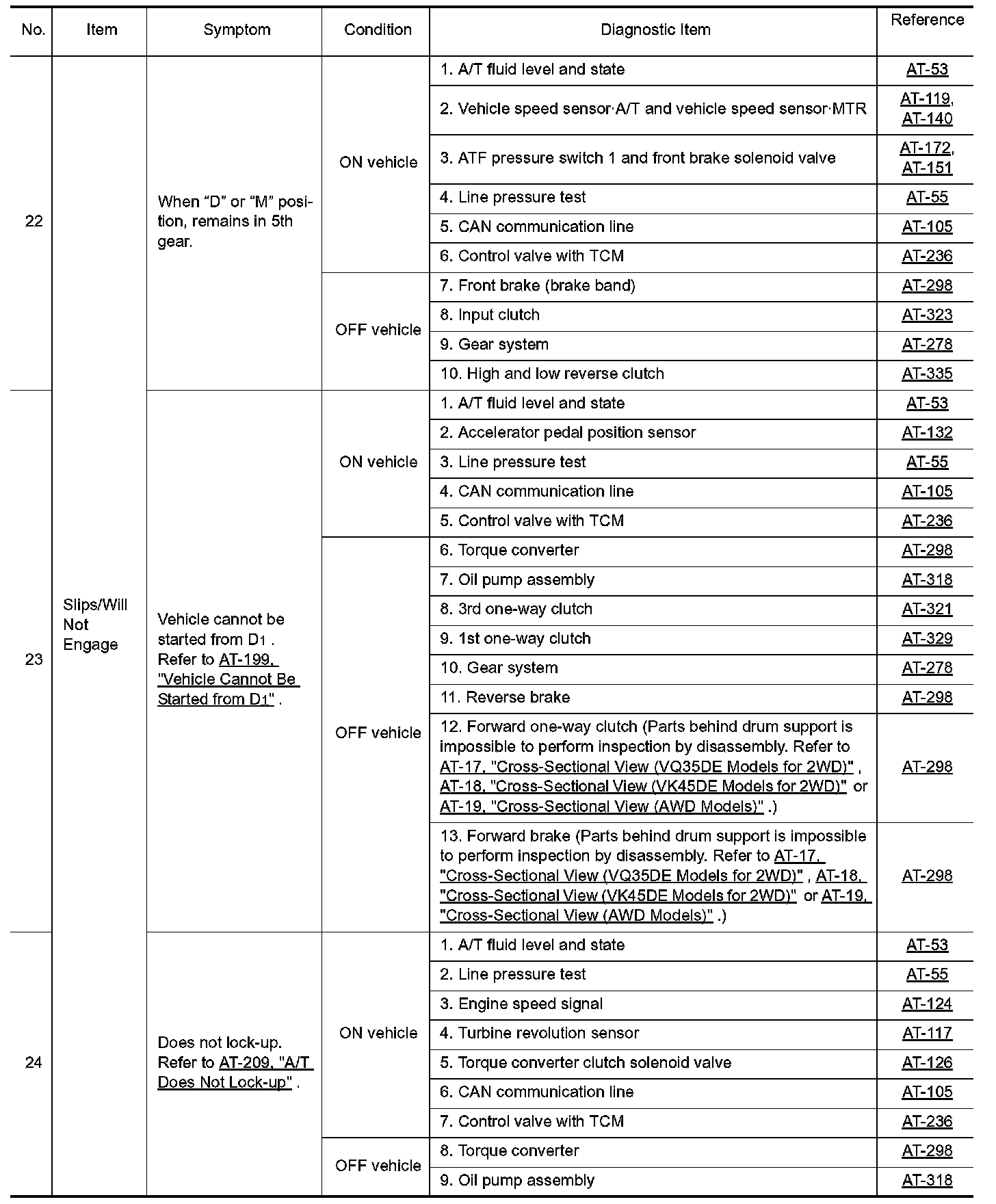 Overhaul and inspection inside the A/T only if A/T fluid condition is NG.