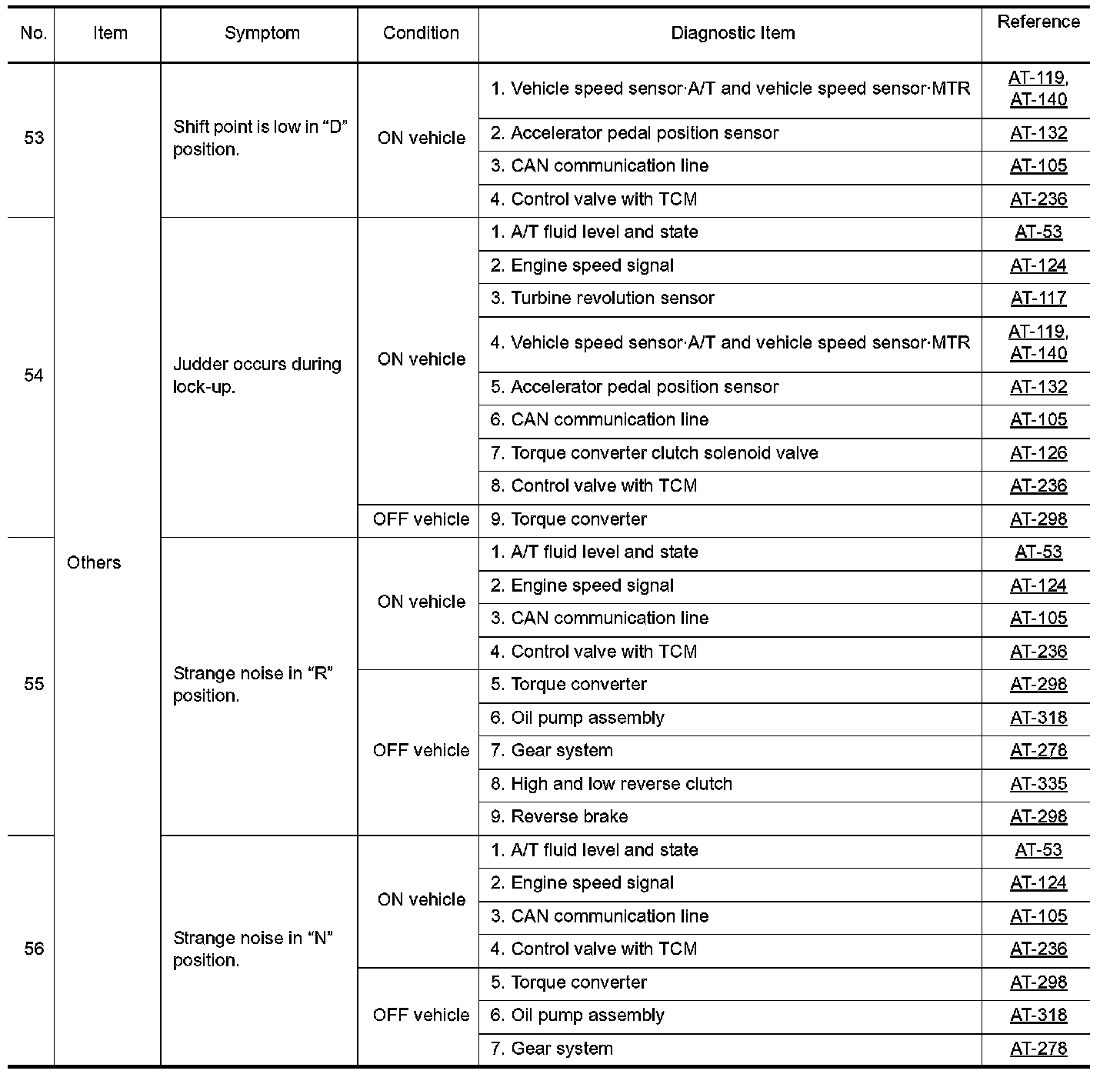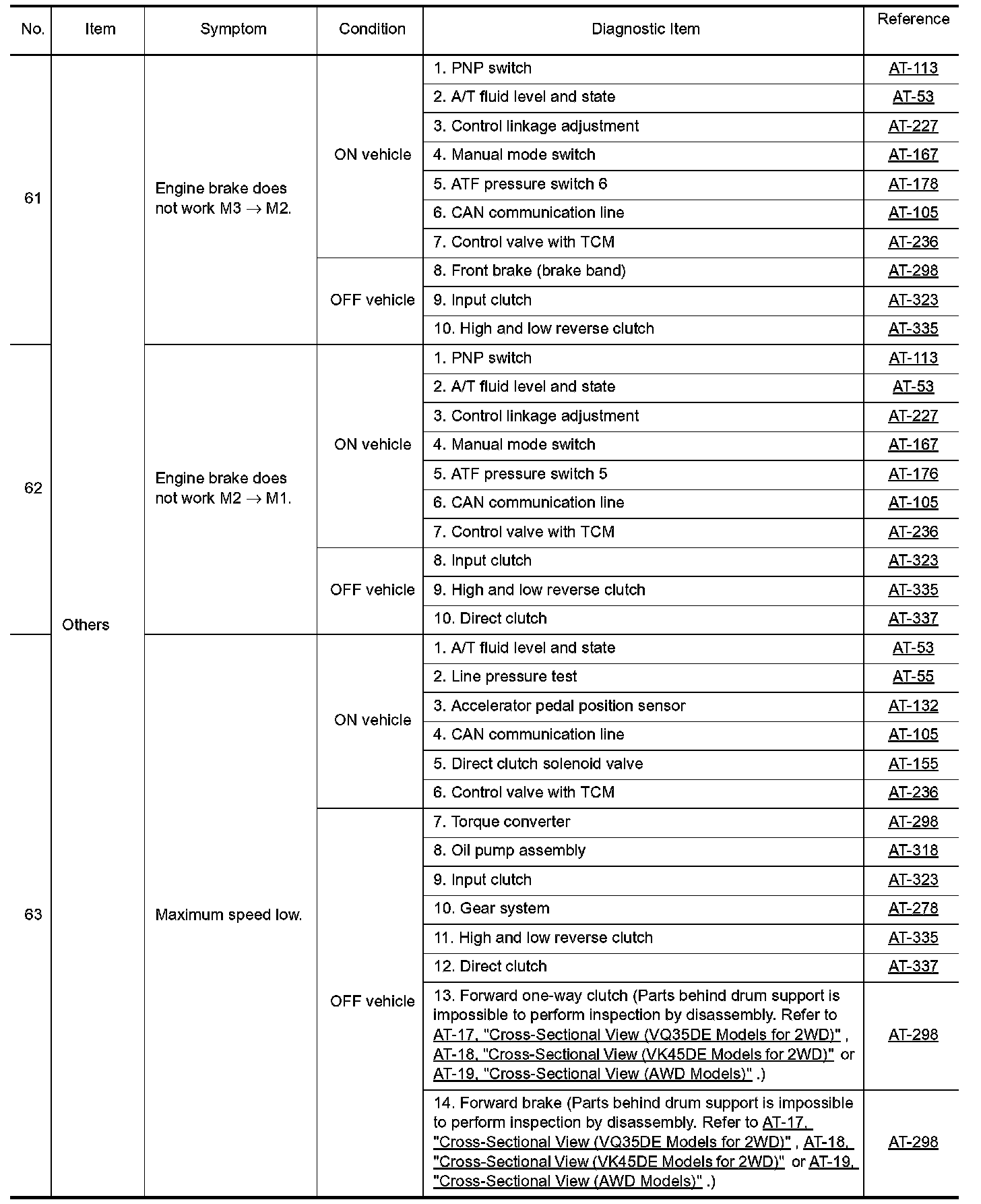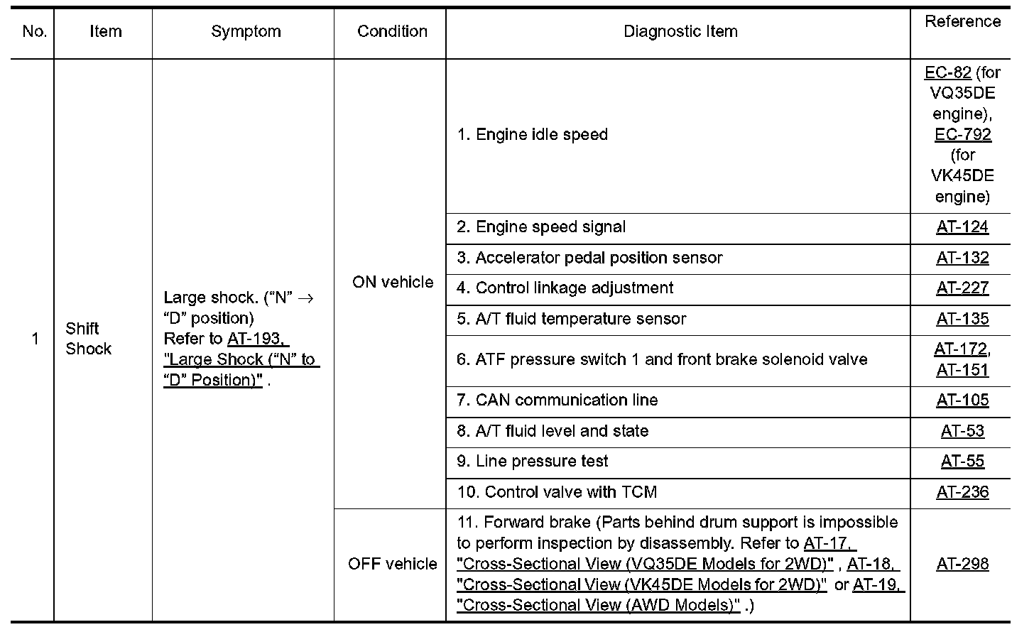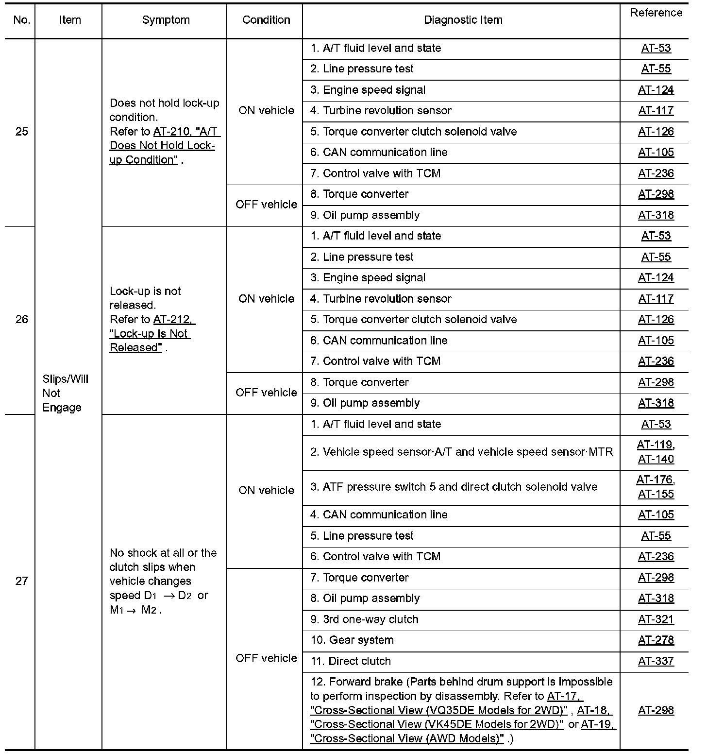 Overhaul and inspection inside the A/T only if A/T fluid condition is NG.