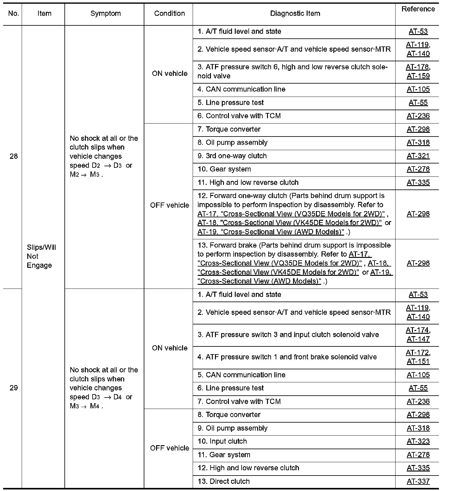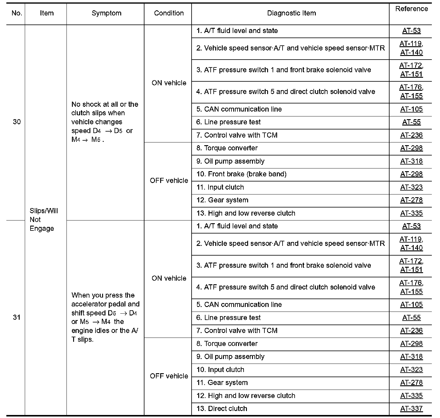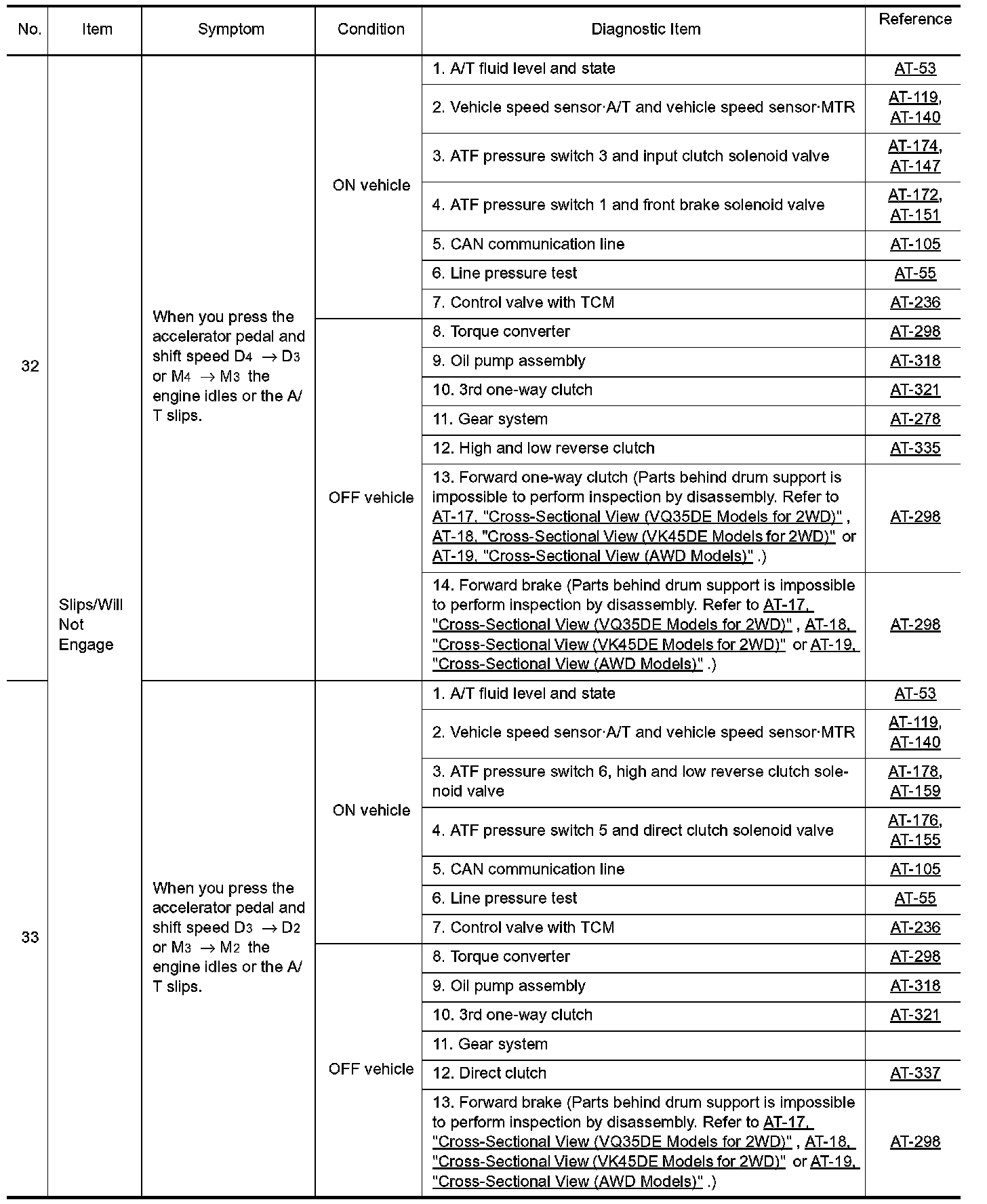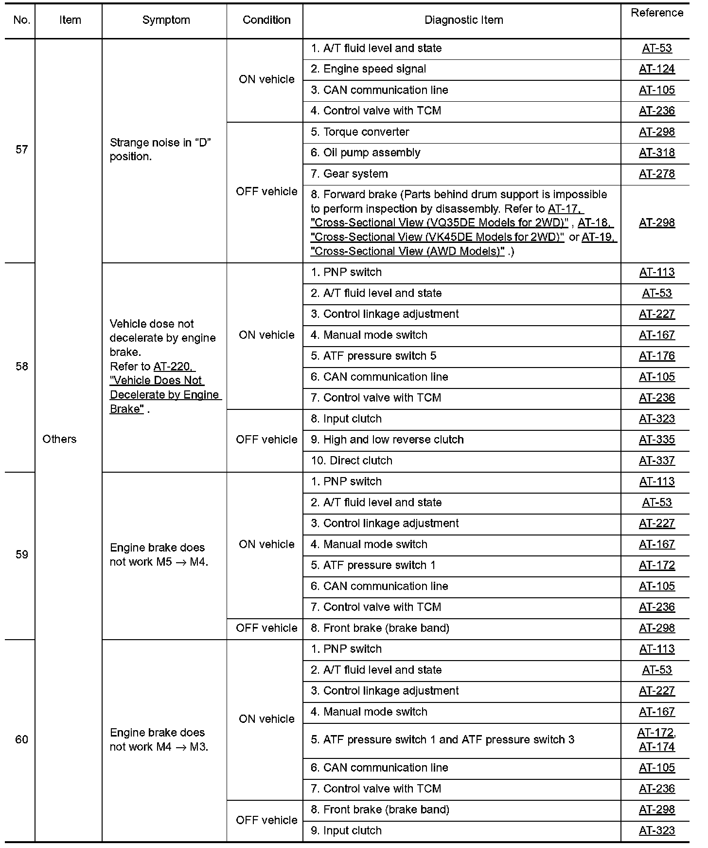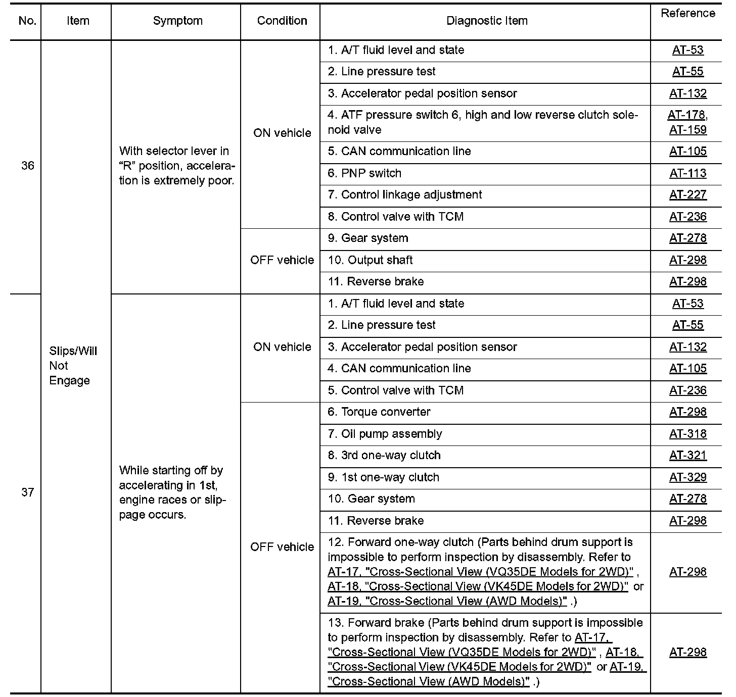 Overhaul and inspection inside the A/T only if A/T fluid condition is NG.