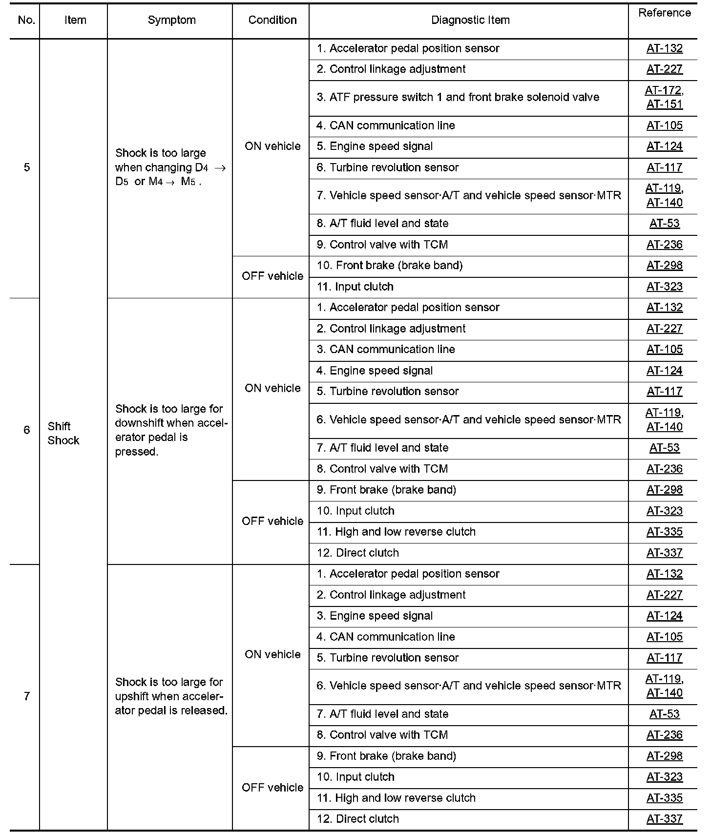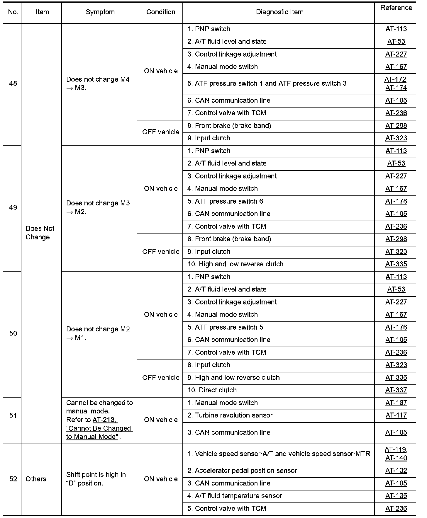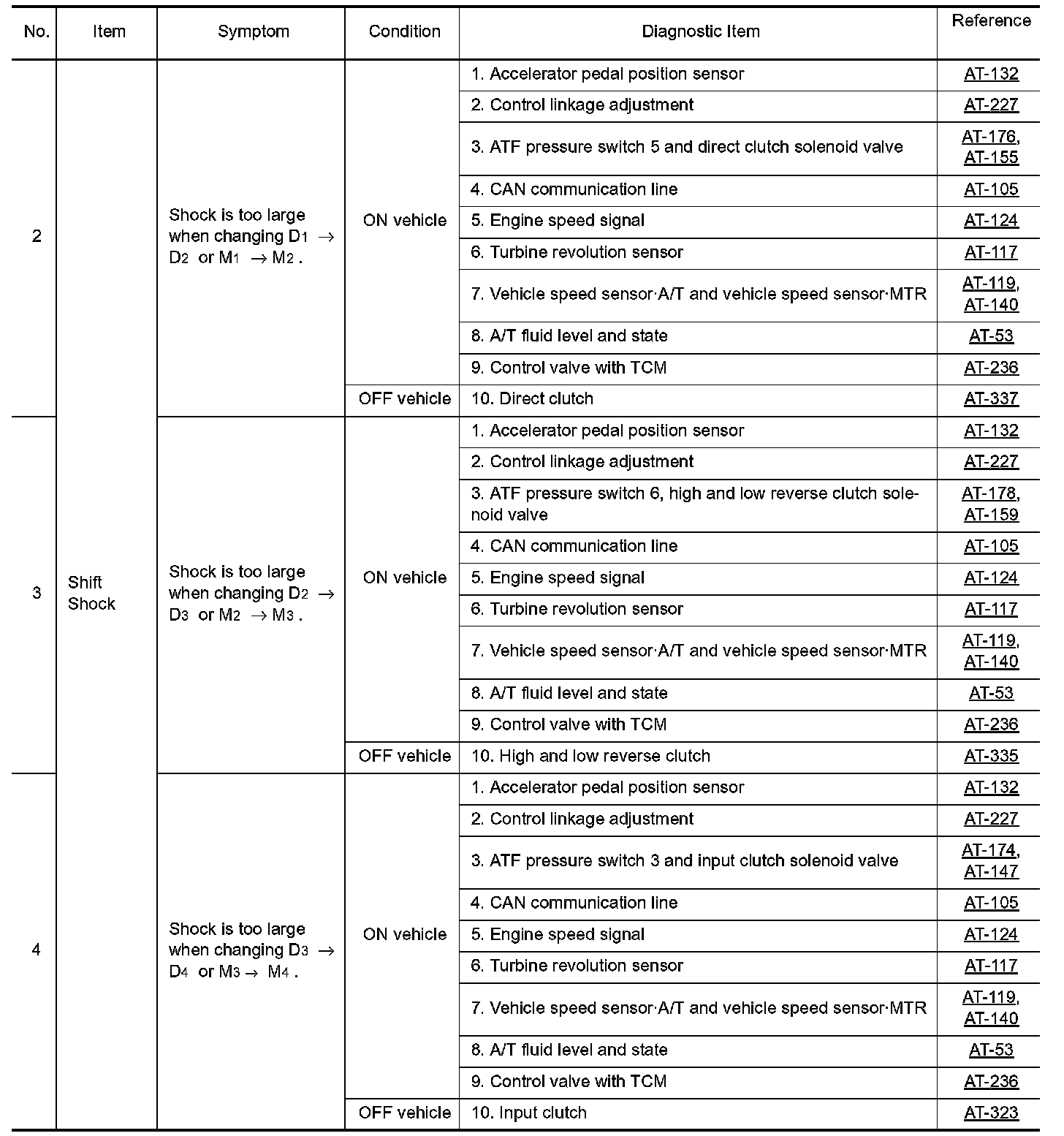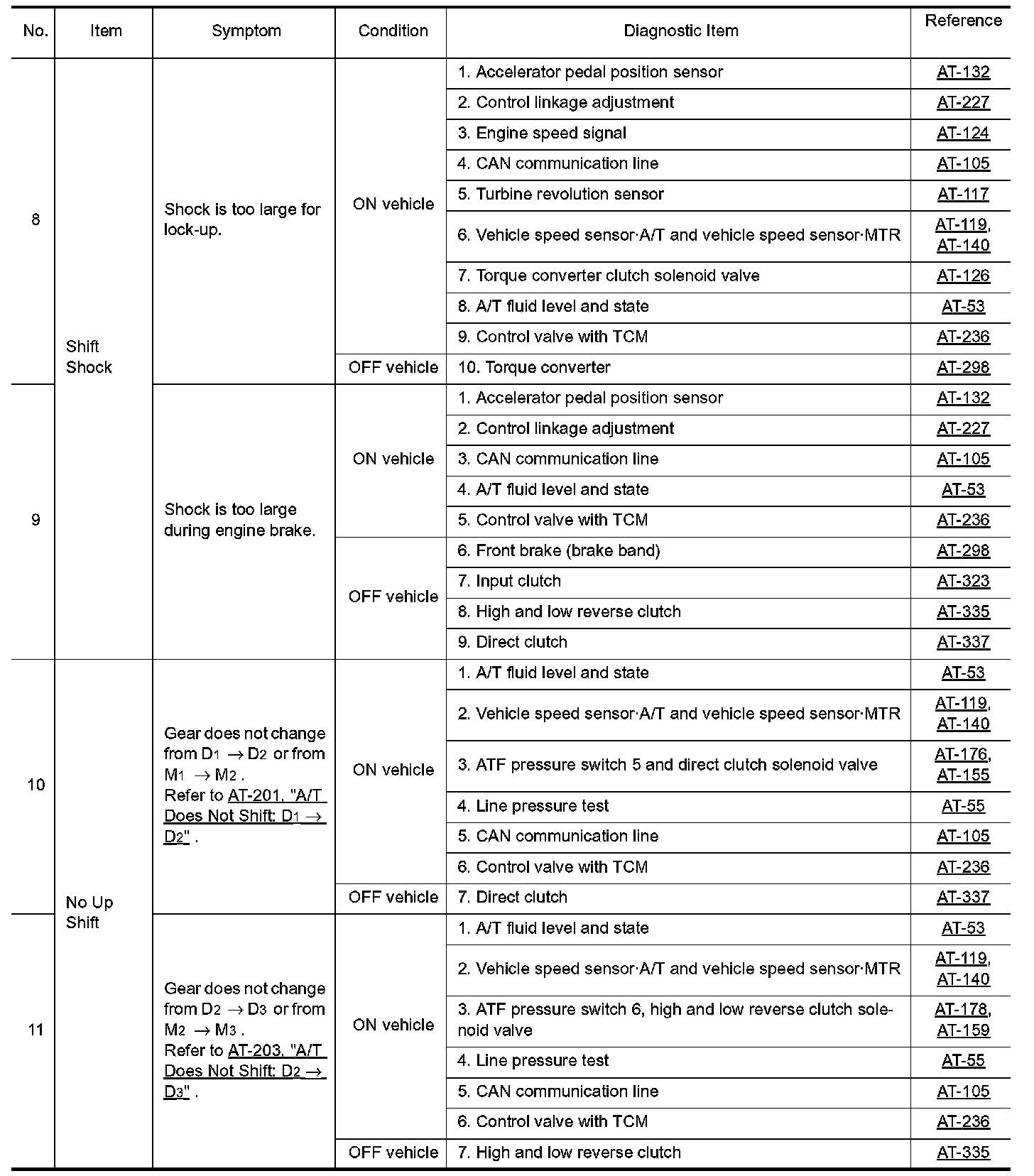 Overhaul and inspection inside the A/T only if A/T fluid condition is NG.