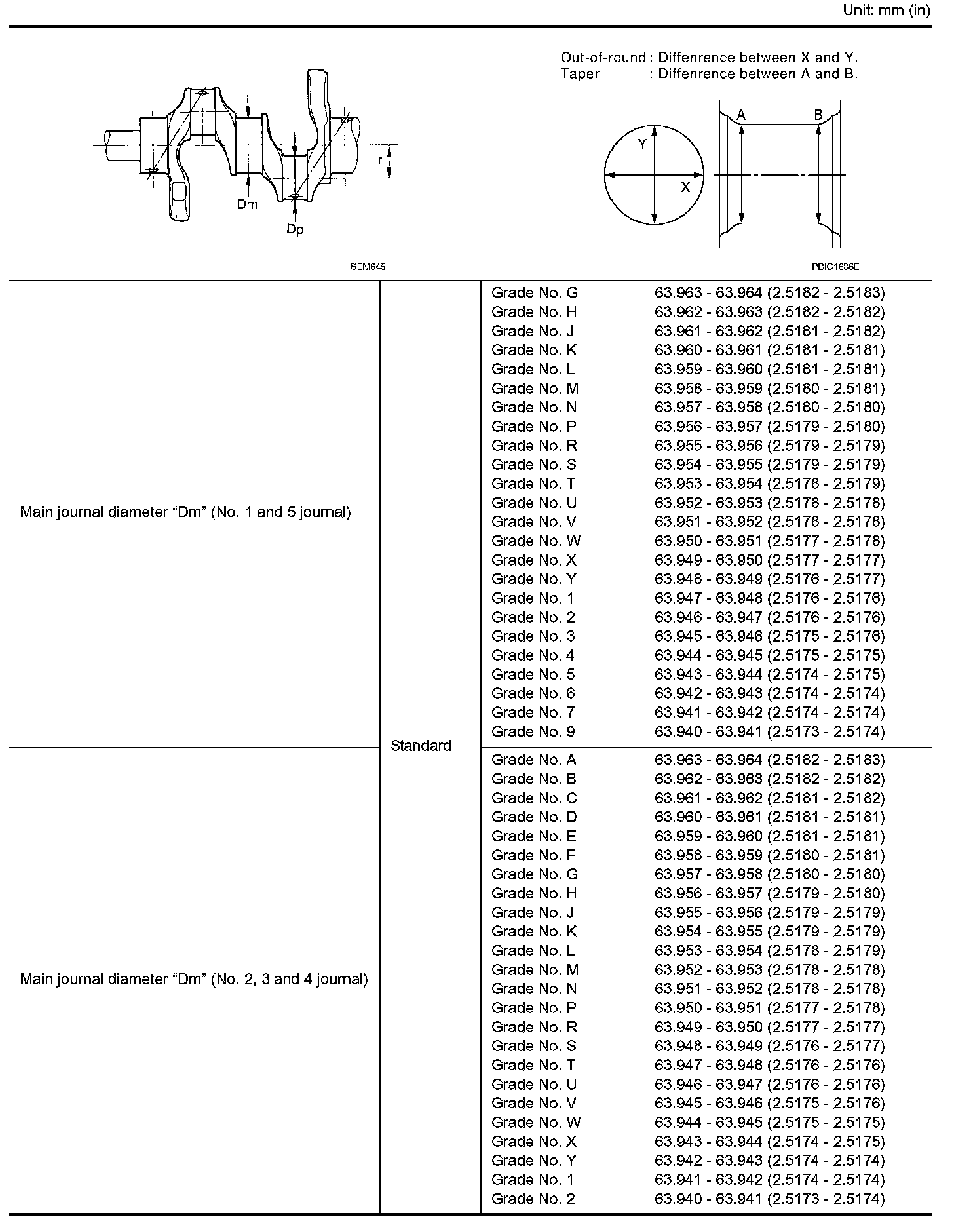 ^ If corrected, measure the bearing oil clearance of the corrected main journal and/or pin journal. Then select the main bearing and/or connecting rod bearing.