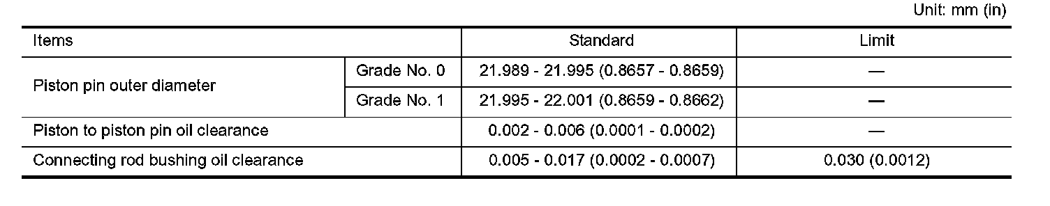 ^ If the calculated value exceeds the limit, replace piston and piston pin assembly.