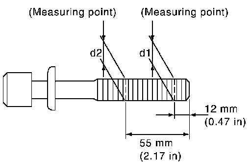 ^ Cylinder head bolts are tightened by plastic zone tightening method. Whenever the size difference between d1 and d2 exceeds the limit, replace them with new one.